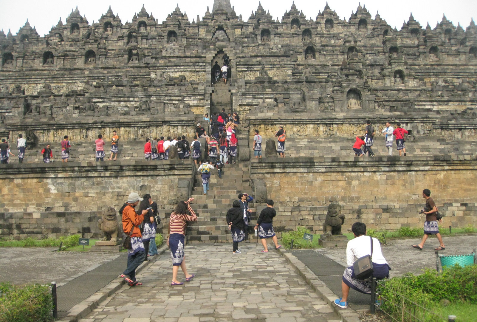 Я точно не ожидала, что увижу прилизанное туристическое место:( Сначала было даже расстроилась, но потом подумала, что всё к лучшему. Без охраны и финансирования (от продажи билетов и пр.) Боробудур просто разнесут по камешку толпы туристов! Ведь мало кто не согласится иметь на память древний кусочек святыни. Так что, здесь не столько охраняют храм от туристов, сколько самих туристов охраняют от всяческих негативных проявлений их собственной натуры.