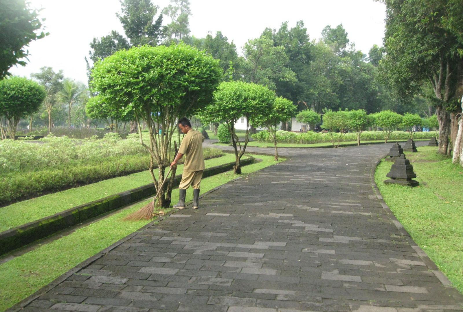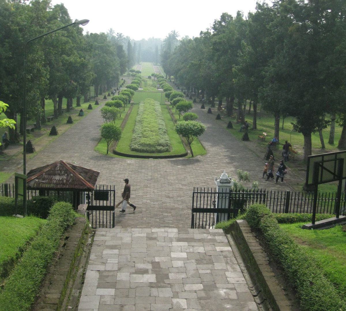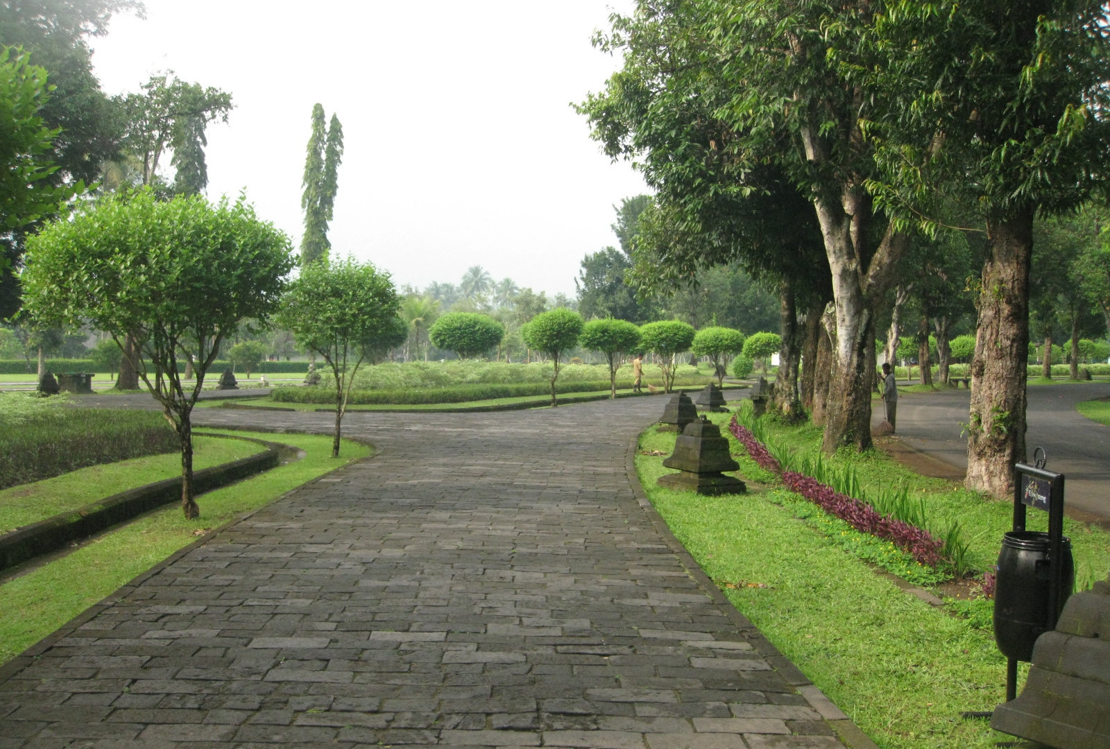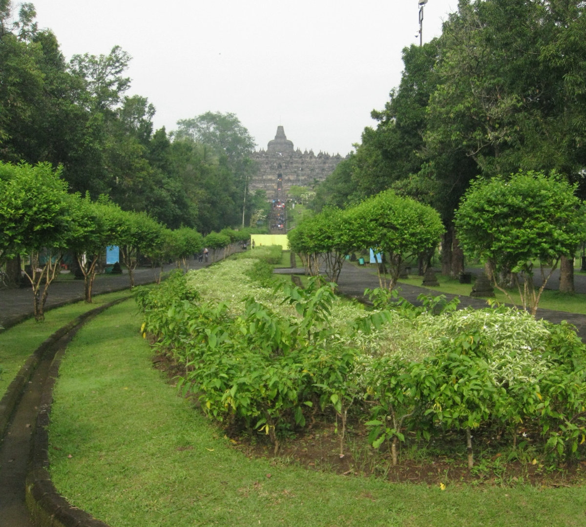 В самом начале я ожидала, что Боробудур- это такой древнейший храмовый комплекс, который находится в непроходимых джунглях. И уж если мы с гидом не будем прорубать к нему дорогу парой мачете в гуще тропической растительности, то уж, во всяком случае, дорога к Боробудуру будет связана с какими-нибудь опасностями и неожиданностями. Но всё оказалось совсем не так! Мы остановились на хорошо оборудованной парковке у огромного ухоженного парка.