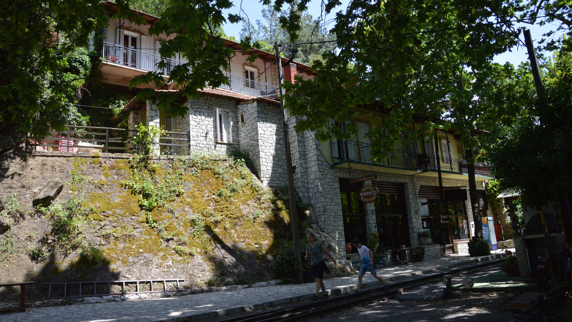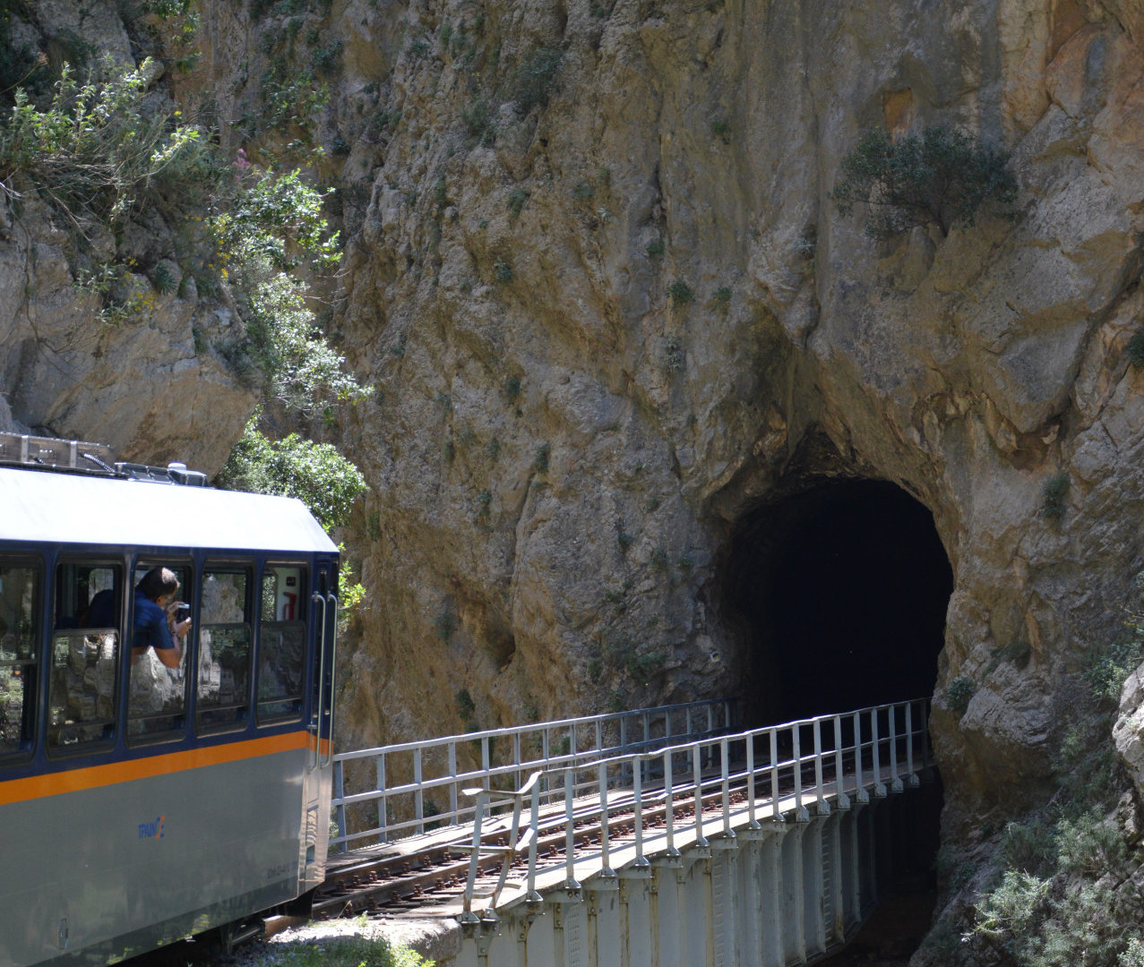Насладились видами и поехали дальше, от пляжа до Дьякопто минут 15 езды. Туристов на вокзале было на удивление много, сплошь французы. В кассах нам предложили несколько вариантов вернуться обратно: на поезде(отправление через 10 мин после прибытия,и этот поезд последний на сегодня) либо на автобусе(последний автобус отправляется в 16.45 с автобусной станции) Мы решили, что хотим погулять еще и в самой деревеньке, поэтому выбрали автобус. Раз в неделю пускают самый старый и самый первый поезд, он еще функционирует!!!!! мы попали на новый, памятник старому находится прямо на вокзале, так что представление какой он был вы получите. Дорога действительно супер, ущелья,туннели, река на протяжении всего пути( но не забывайте это был МАЙ, когда воды достаточно),горы с двух сторон, не Викос конечно,но все равно очень впечатляет.