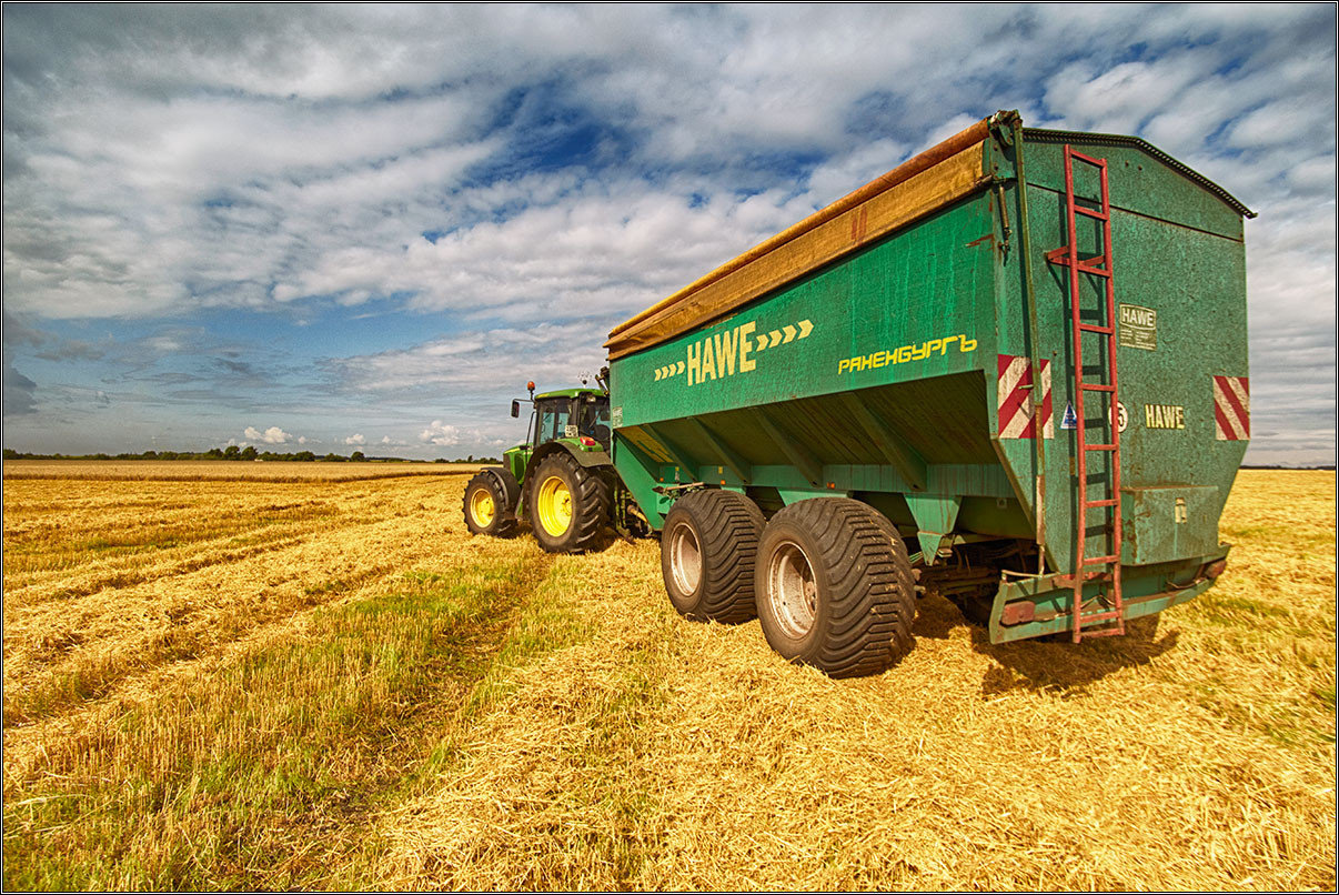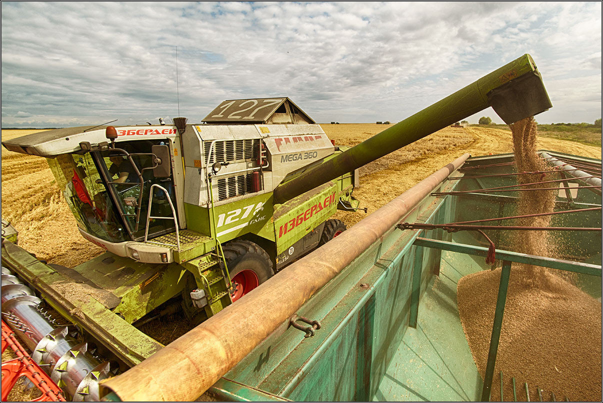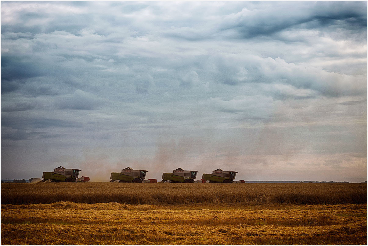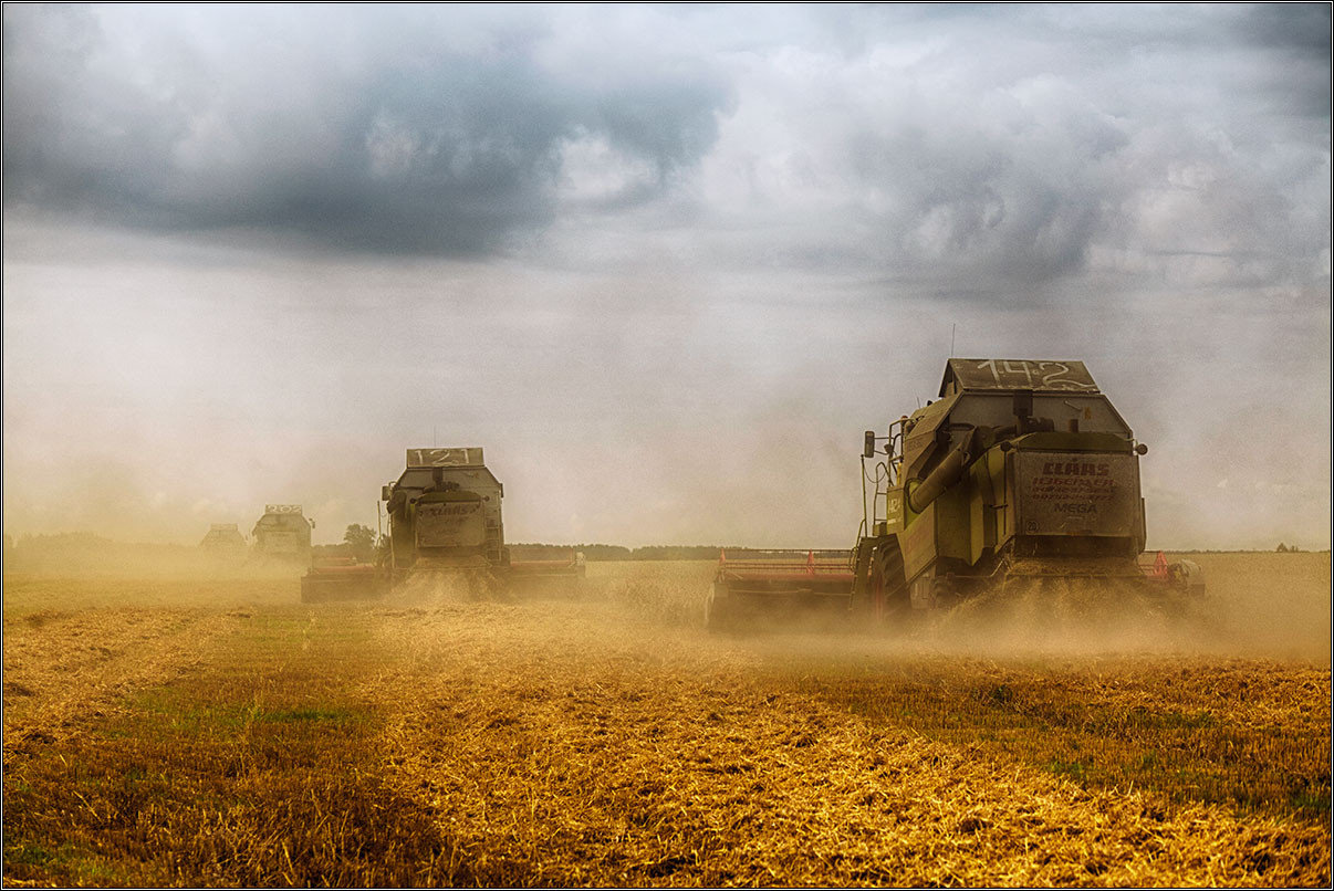 По большому счету, мне в этот раз можно было туда и не ездить — хозяйство другое, но по сути-то я наснимал всего того же самого, что и в прошлый раз: поля, комбайны, летящая пыль и колышущиеся моря пшеницы. Небо было немного не такое, больше акцента я сделал на людях, а вот для комбайнов и тракторов каких-то особо новых ракурсов не придумаешь, я их все еще в прошлый раз использовал.
