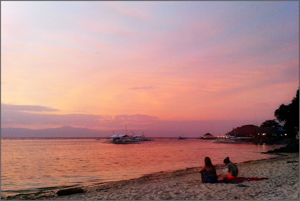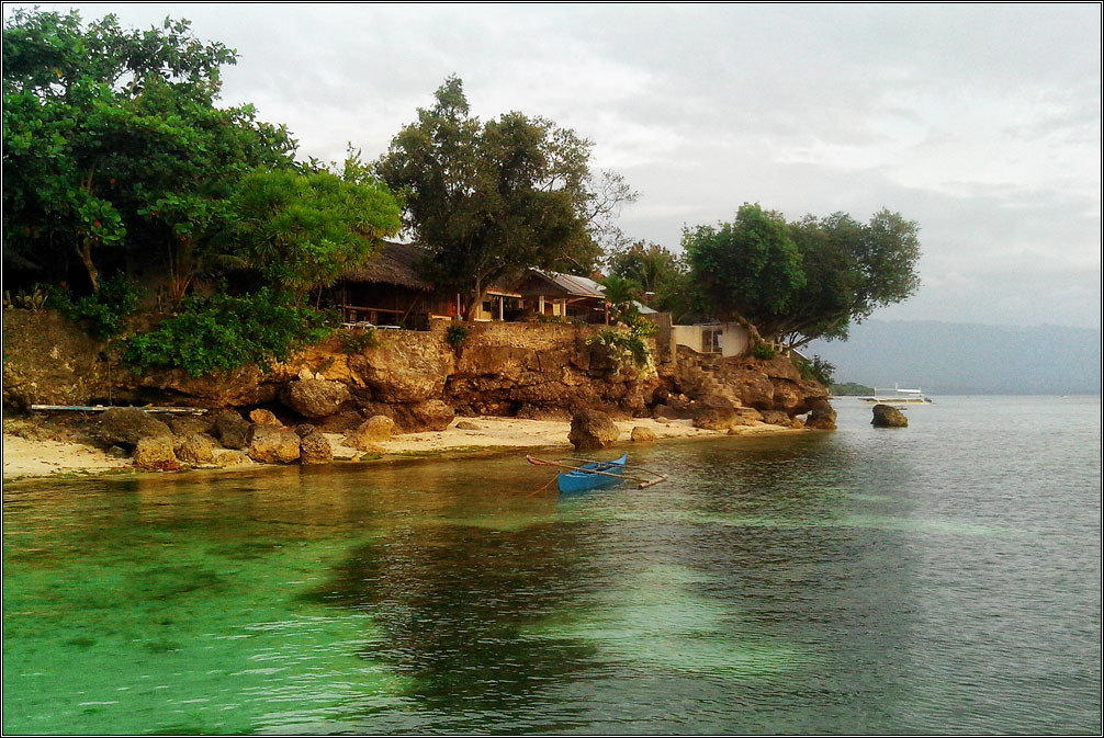 В море — рифовая стена, снорклинг прямо с берега. В паре километров от нас — более традиционный пляж White beach, как следует из названия — с белым песочком. Мотобайки с вариатором в аренду сдают по очень высоким ценам, взял с «механикой», что, впрочем, может и хорошо, ибо мы планируем съездить и на местные водопады, а там дороги горные. Фрукты тут дешевые, пиво дешевое, ресторанчики везде, вай-фай ловится, домик у нас прямо на берегу моря, стоит 600 песо в день, это примерно 450 рублей, но если останемся надолго — нам обещали скидку.