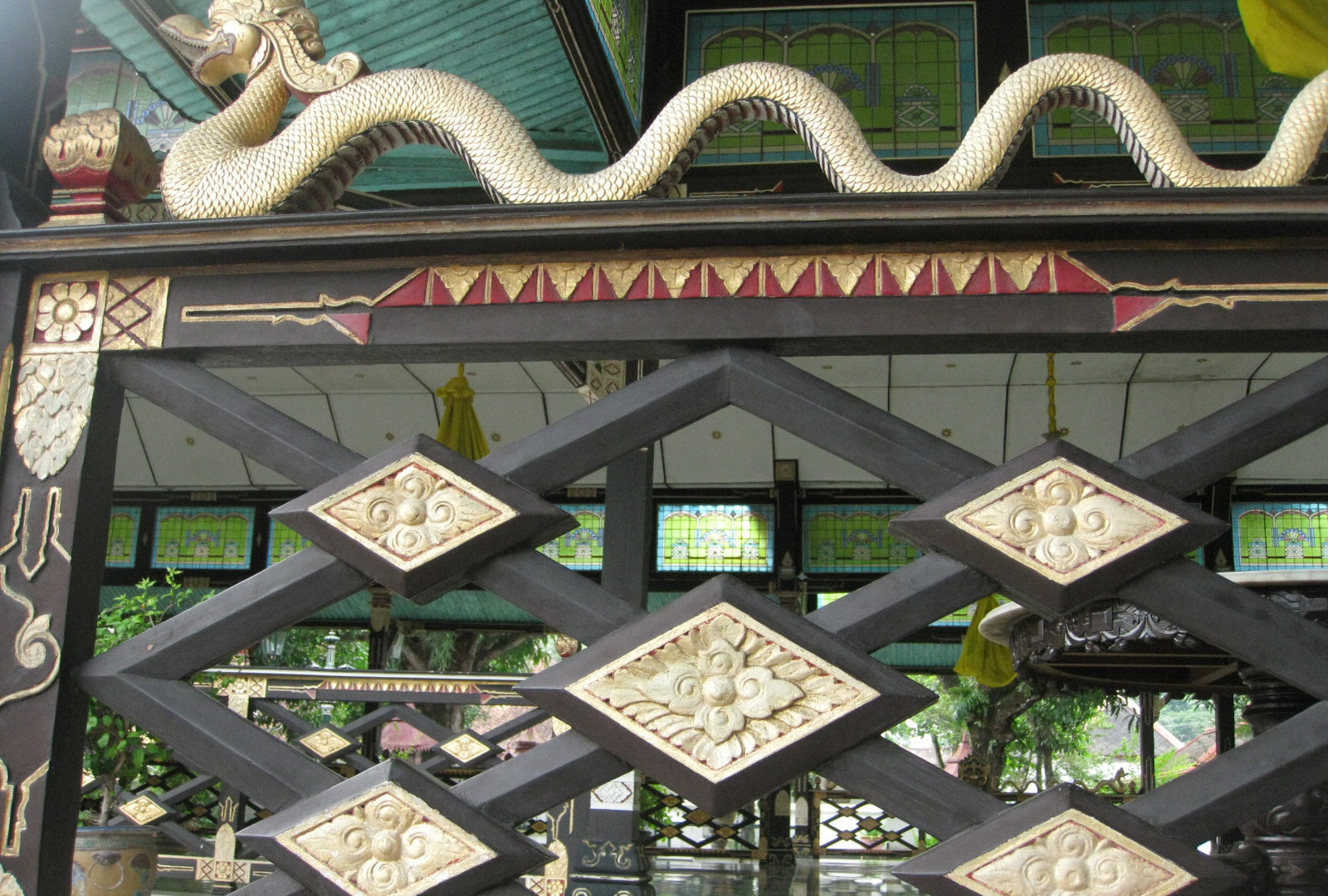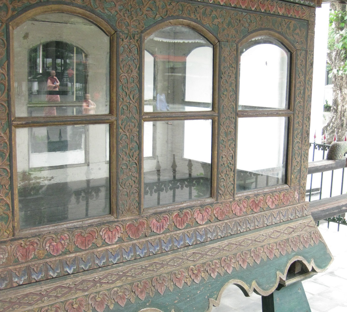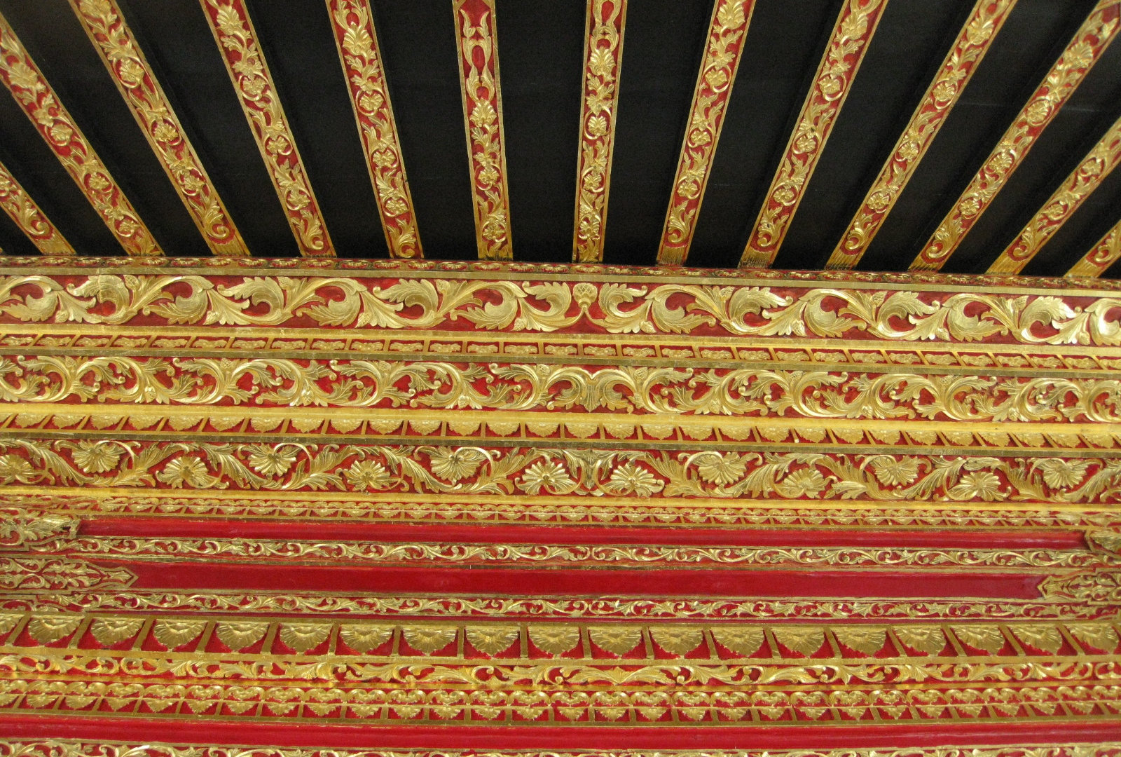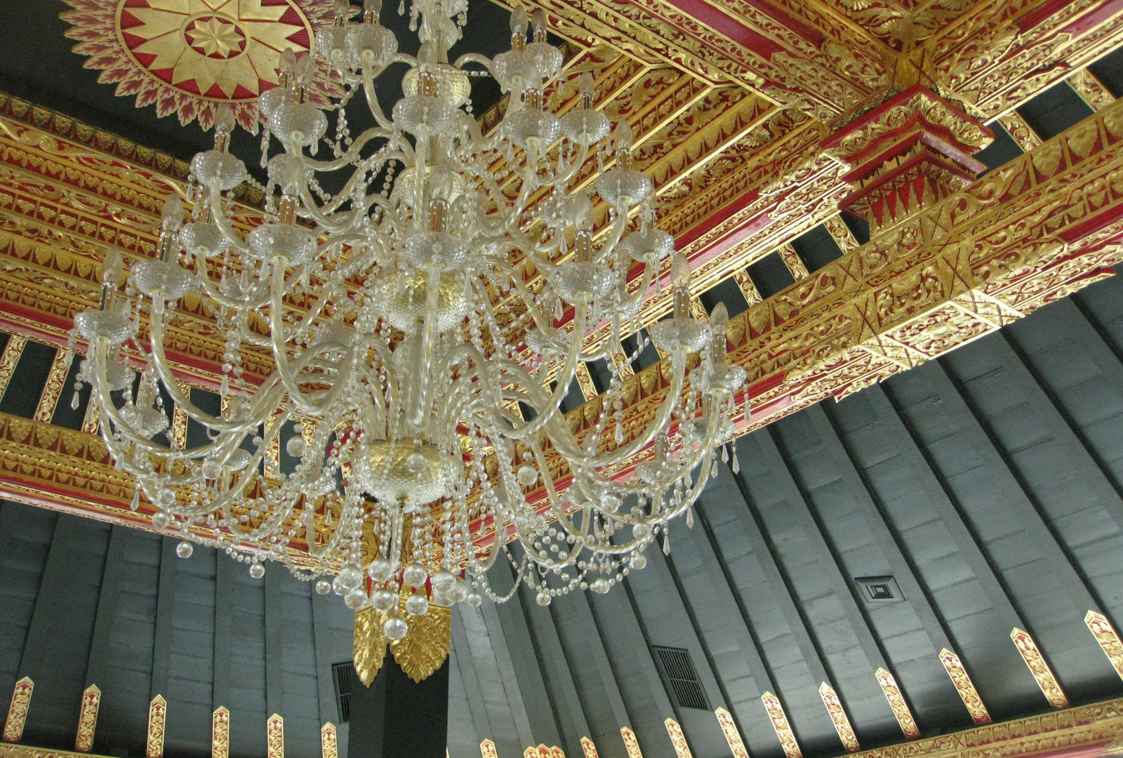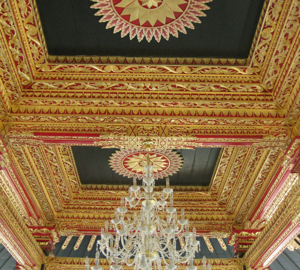 А потом мы прошли в зал. Красота невероятная! Тонкая деревянная резьба покрыта золотом. Потолок украшен замысловатой люстрой. И выглядит это всё изящным и лёгким, как ни странно. Ну, так мне показалось.