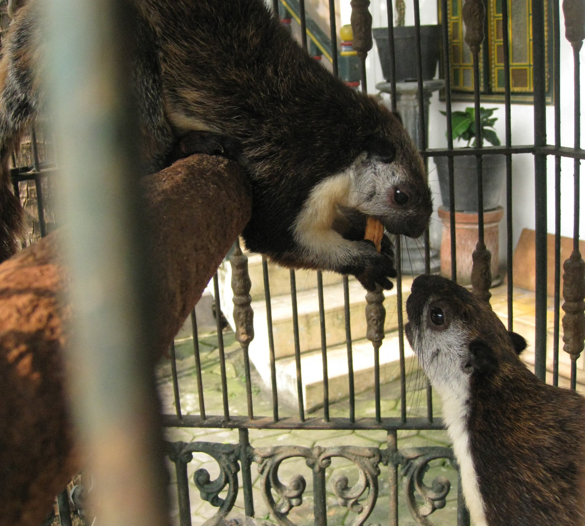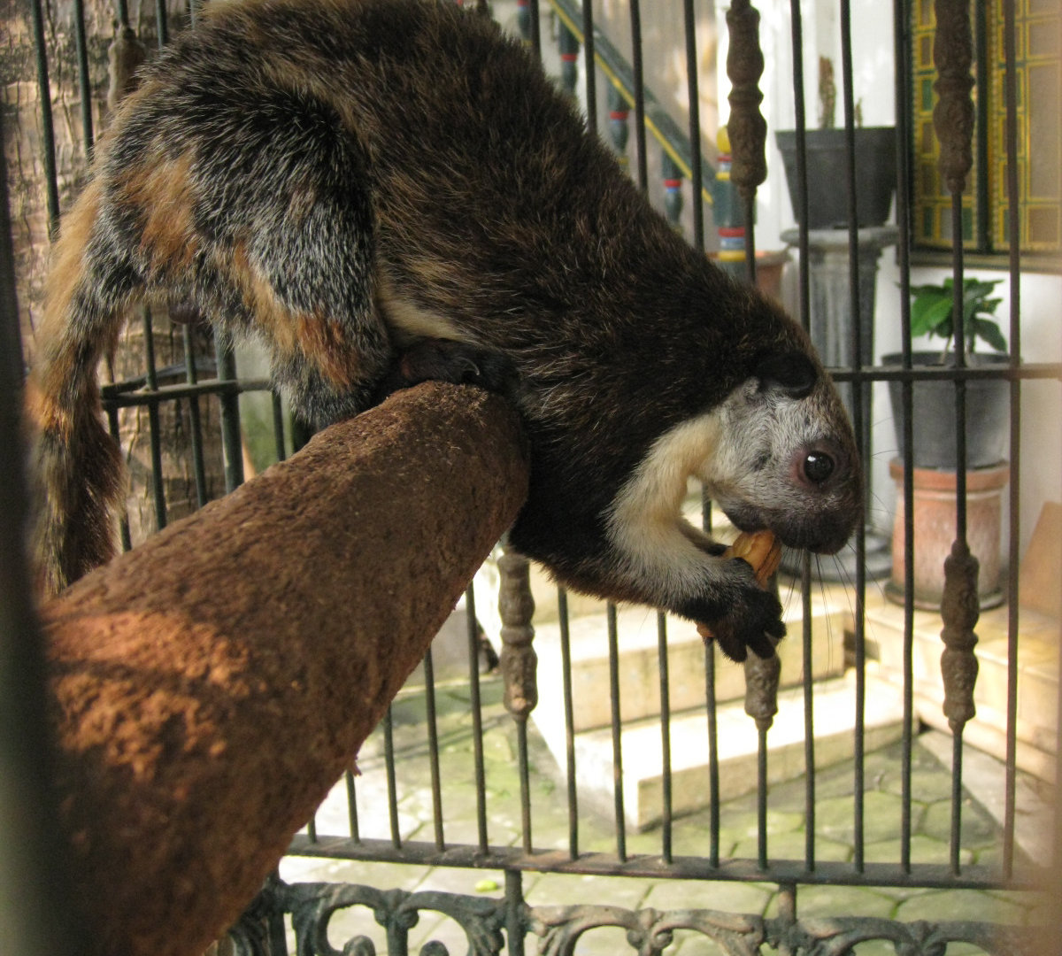 Познакомилась я на Яве и с белками. Такие зверьки живут на Суматре. Размером такая белочка с небольшую кошку! И очень энергичная! Я сразу подумала, что заведись такие белки в моём саду (вместо местных мелких), то съедят не только все фрукты с деревьев, но и сами деревья нафиг сгрызут:(