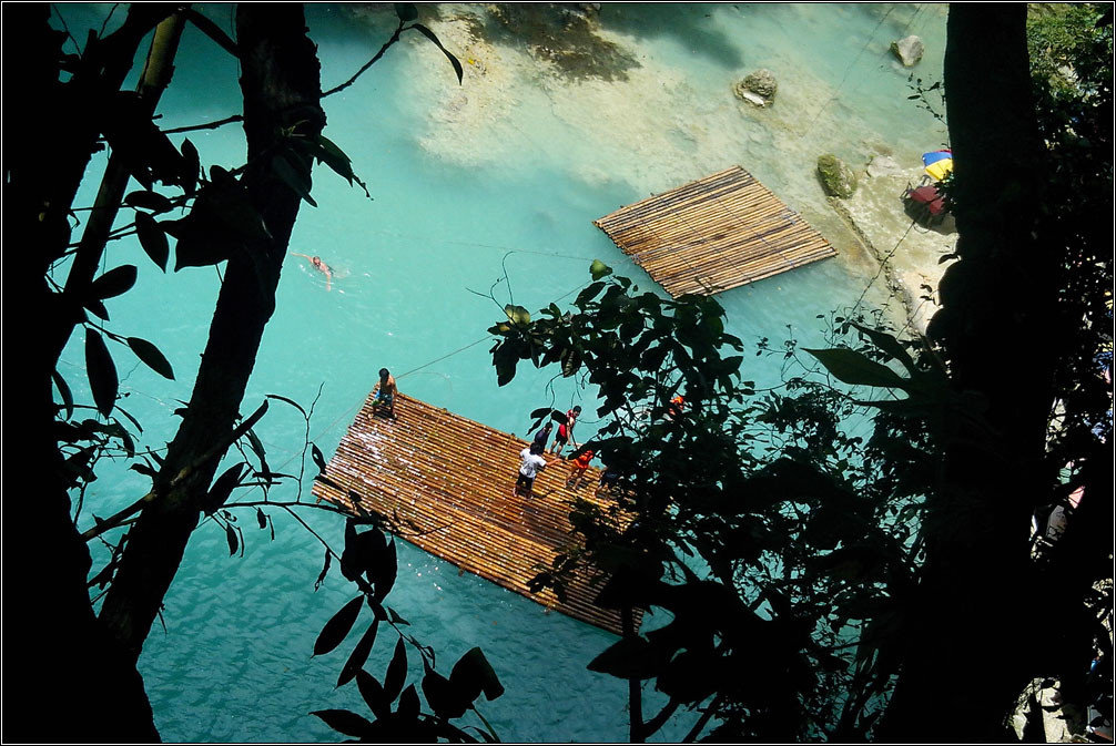 Сам водопад полноводный, средней высоты, метров 10, не больше. Но опять же, очень красивый, а пресное озеро у подножия – отличное место для купания. Немного портит картину местный малый бизнес, представители которого пытались стрясти с нас денег даже за то, что мы сели за столик на берегу, но даже они не сильно напрягли. Китайцев в спасательных жилетах по озеру катают на бамбуковых плотах – 30 метров до водопада и обратно. Мы предпочли поплавать самостоятельно.