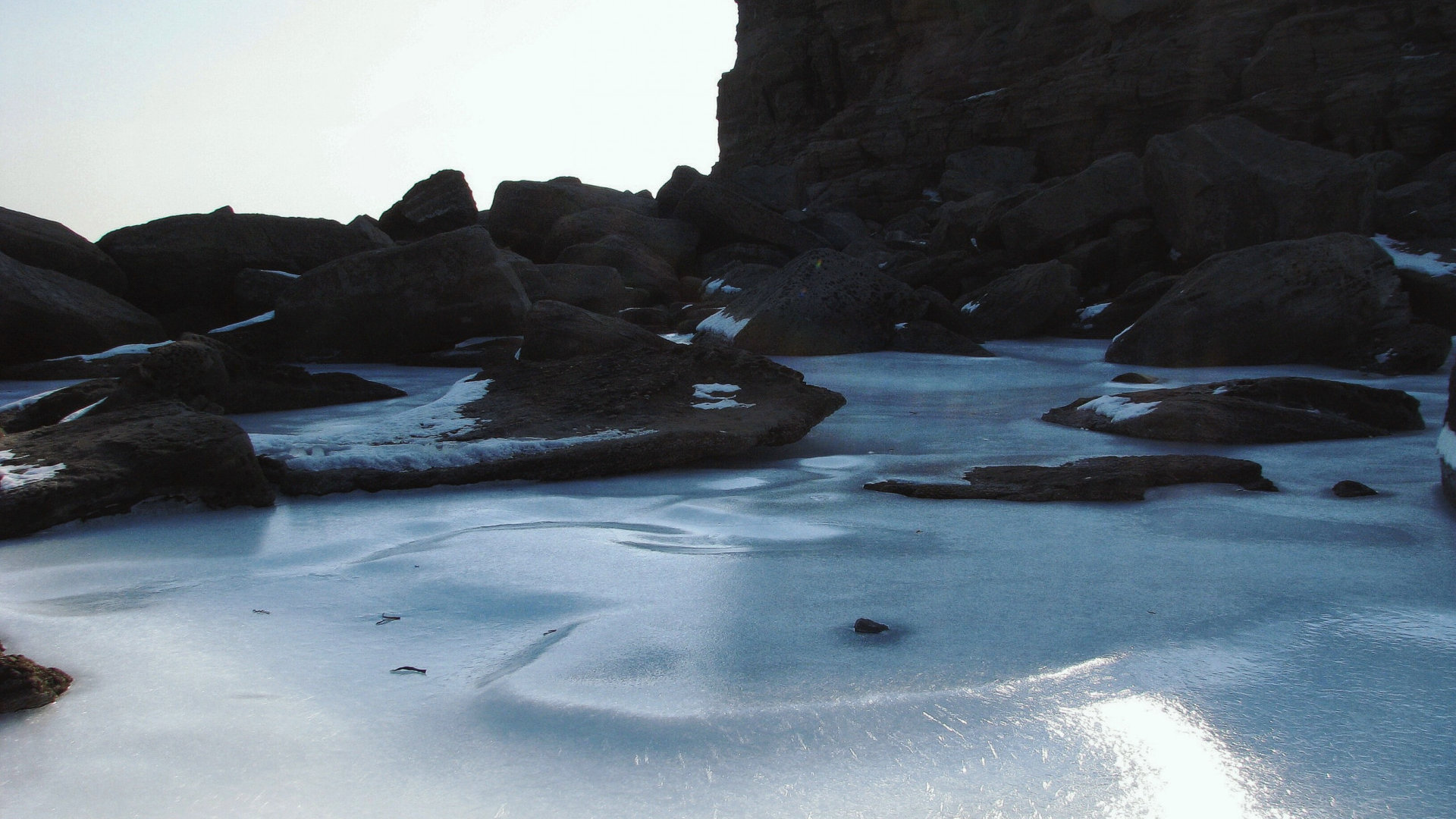 Мне повезло, чтов это время года вода превратилась в невероятно красивый лед, по которому и совершал переправу, ровно до того момента, пока он не дал трещину под моими ногами.