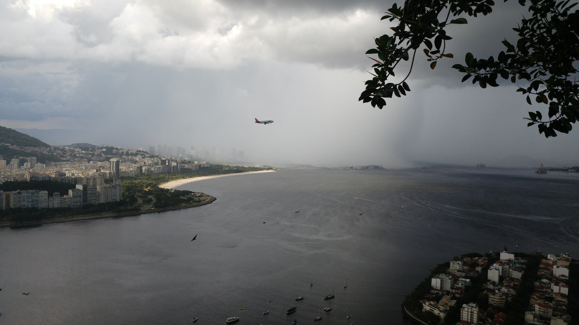 Нам повезло увидеть как на город движется тропический ливень и самолёты заходят в аэропорт ниже смотровой площадки (в видео видно лучше).