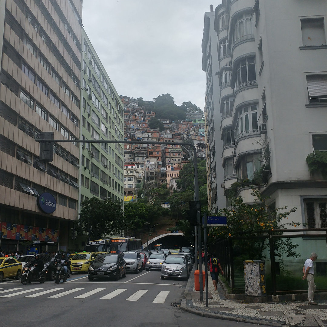 Прямо от широких проспектов рядом с пляжем Копакабана по холму лепятся фавелы — куча разноцветных халуп, в которых проживает беднота.