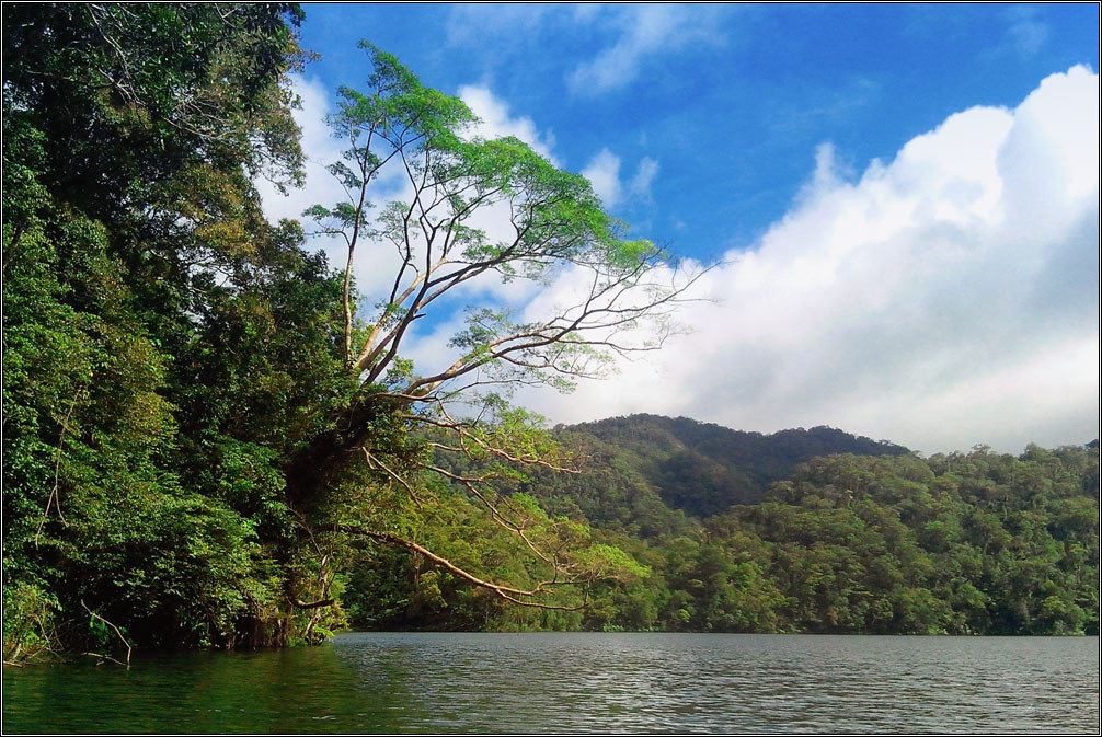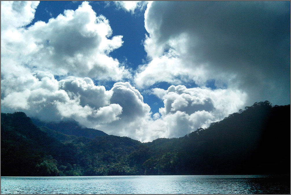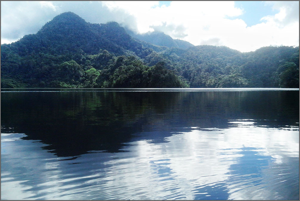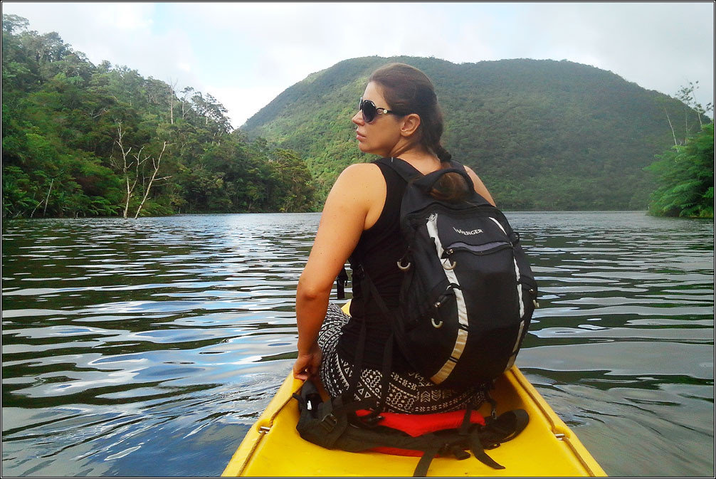 На озерах практически никого нет. Кроме нас там еще была всего одна пара туристов, мы арендовали у местного малого бизнеса два каноэ и поплыли осматриваться. Вода в озере удивительно спокойная. Даже весла погружать жалко, кажется, что этим ты нарушаешь установившуюся вековую гармонию. Горы по берегам выглядят, как пейзажи из фильмов по книгам Толкиена, на тропики не похоже, похоже именно на Средиземье.