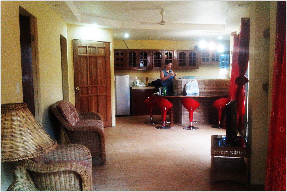 Познакомились вчера с местной русской тусовкой, благо, соотечественников тут не очень много и все друг друга знают. Немедленно вписались в компанию, поехали на шашлыки в горы, на горячие источники, очень приятно провели вечер. Все сплошь люди творческих профессий, все путешествующие, хотя многие осели на Филиппинах прочно и надолго. Нам тут же нашли более-менее постоянное жилье, причем совершенно потрясающее. Это целый этаж дома, большая трехкомнатная квартира. Гостиная с кухней, где есть вся необходимая техника, включая даже стиральную машинку и кулер с водой. Две спальни, три балкона, санузел, барная стойка, окна от пола до потолка и вид на море. И все это богатство — за 800 песо в день, это примерно 600 рублей.