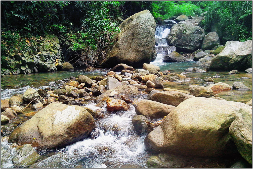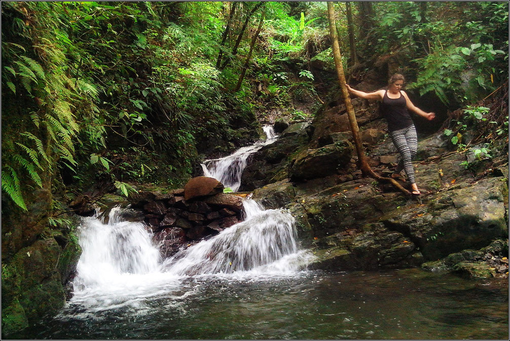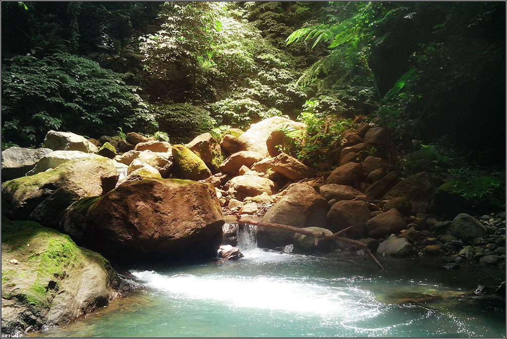Незапоминающееся название – водопад Касароро. Сначала долго ехали на первой-второй передаче в горы, потом дорога стала совсем никакой, бросили байк, пошли пешочком. Как обычно, на «входе к Провалу» дежурит местная тетенька, собирает по 10 песо и записывает имена-фамилии приходящих. Вниз с горы ведет крутая длинная лесенка, на дне ущелья – быстрая горная речка, по берегам которой торчат пучками исполинские заросли бамбука. Дорога к водопаду, явно когда-то облагороженная бетонными мостиками, обвалилась во время очередного тайфуна, приходится карабкаться по беспорядочным кучам валунов, пересекать эту самую речку, но за очередным поворотом открывается впечатляющее зрелище: не самый высокий, но с прямой узкой струей, 30-метровый водопад, острым водяным лезвием режет скалы, грохочет и вздымает облака водяной пыли. Красиво.