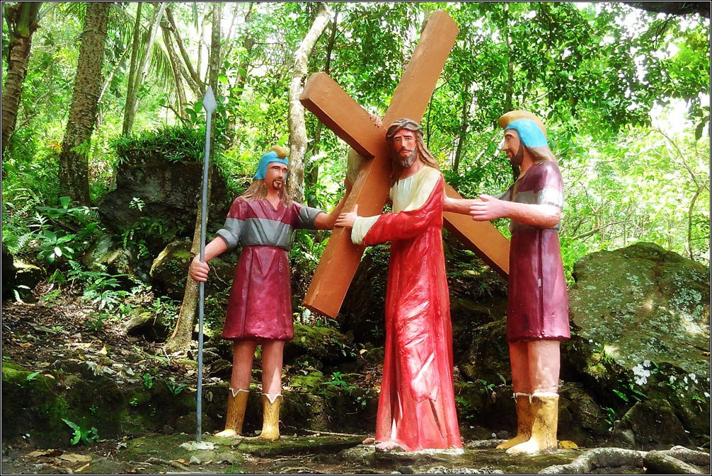 Как-то лень здесь обрабатывать картинки. Но мы почти каждый день путешествуем, осматриваем остров, побывали почти на всех природных достопримечательностях — на водопадах, горячих и холодных источниках, прогулялись по горной тропе с забавными скульптурами на религиозную тему, съездили на соседний маленький островок Мантиг с белым песком и коралловым рифом, в общем объездили практически весь остров. Странно, номинально он размером с Самуи, даже длина кольцевой дороги совпадает — 65 км. Но по ощущениям кажется, что меньше. Вот, например, от нас до столицы, городка Мумбахао — примерно 15 минут на байке. Это как на Самуи от Липа Ной до Ламая. Но там это — долгая дорога через пол-острова, а здесь — сгонять на рынок за рыбой и фруктами.