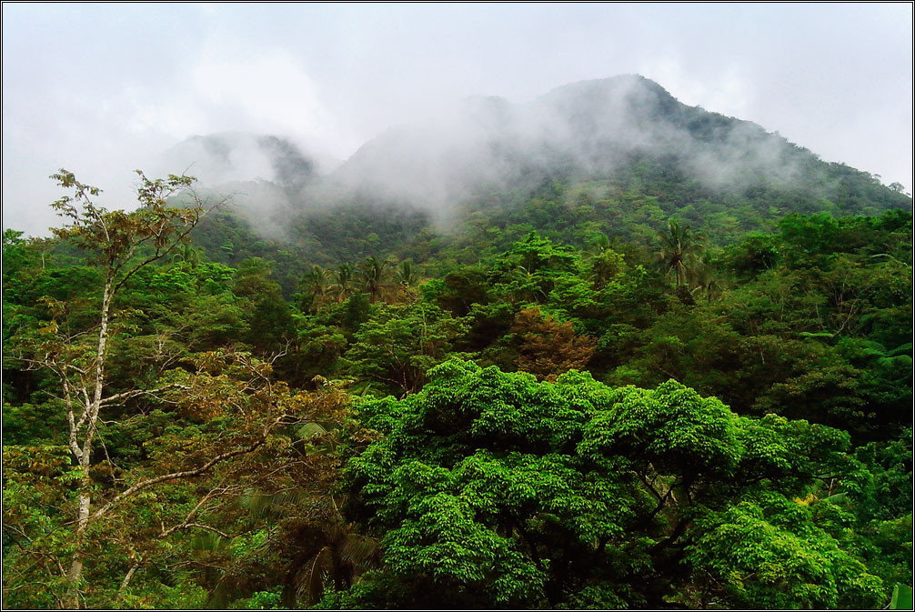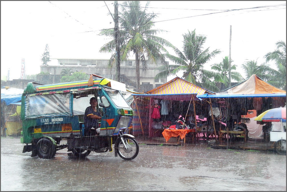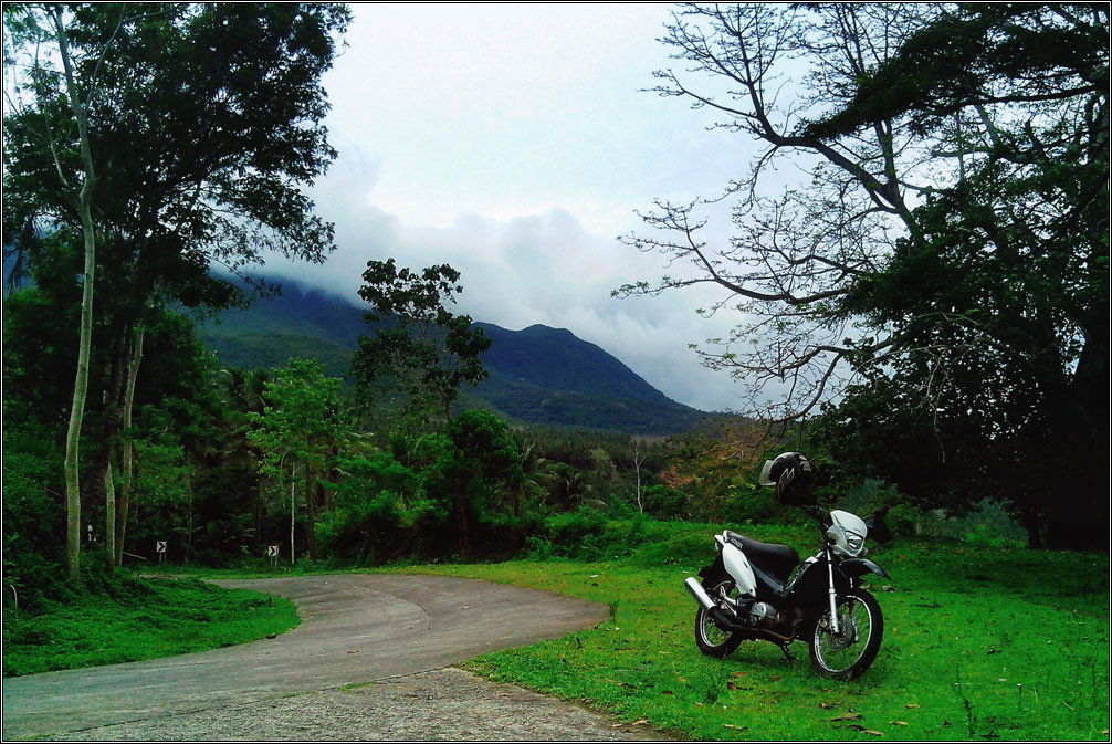 Добрались до высоты 800 с лишним метров, въехали в тучи, полазили по скалам, нашли по дороге обсерваторию, несколько деревень, виллу какого-то богатого филиппинца с шикарным видом на остров, всяческие сельскохозяйственные угодья, отель Camiguin Highland Resort, в который заглянули поесть, потом спустились с гор, поехали на рынок за продуктами, попали в тропический ливень...