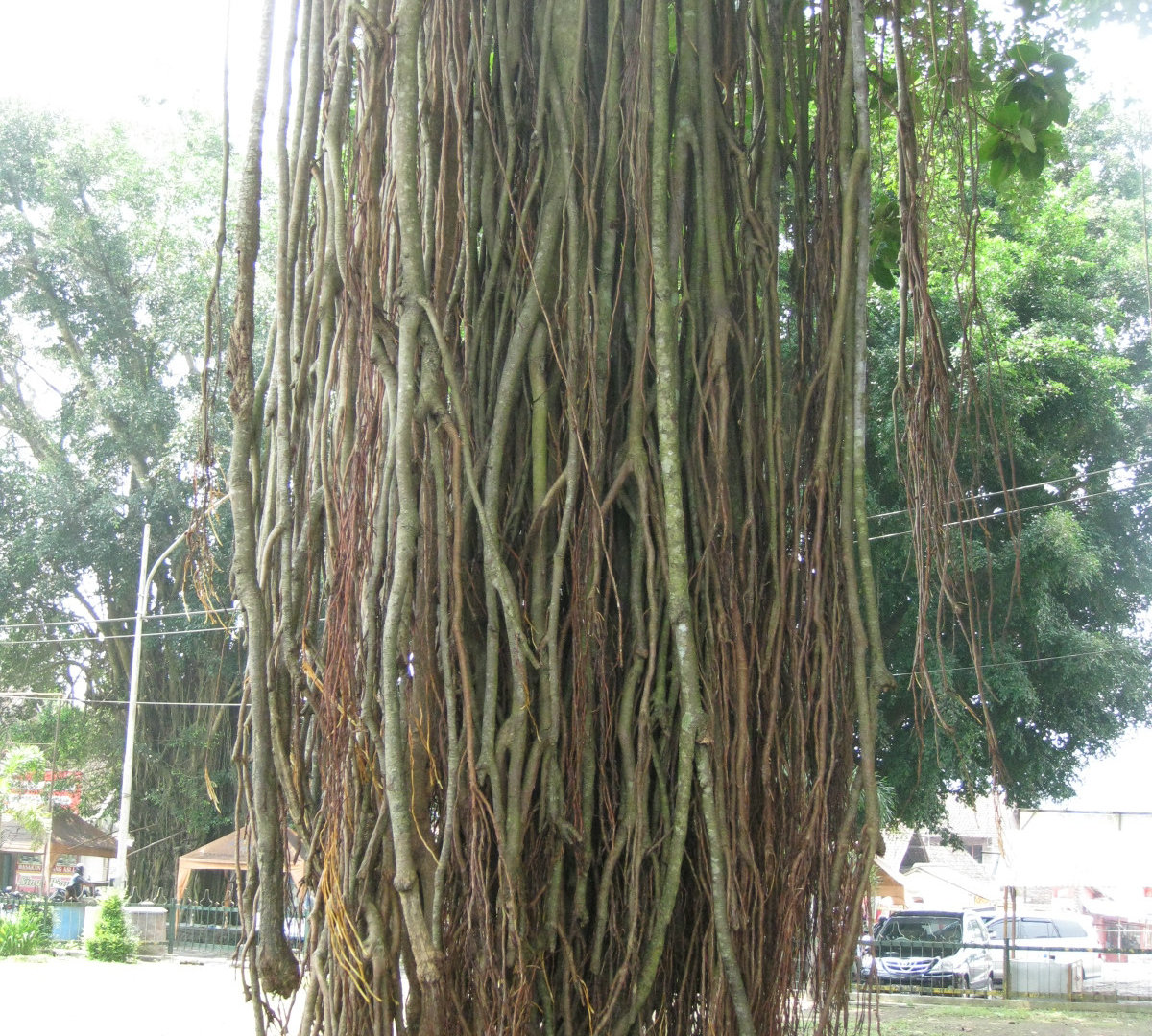 По дороге из Дворца Султана мы увидели Дерево Баньян. Священное вечное Дерево (если какой-нибудь идиот его не срубит, конечно). Вообще, Баньян не трогают. И уж тем более, не делают из его древесины всякие поделки-сувениры. На Бали очень часто можно увидеть на стволе Баньяна клетчатый чёрно-белый саронг. Местные жители приносят к Дереву подношения и даже строят на некоторых самых больших деревьях небольшие Храмы.