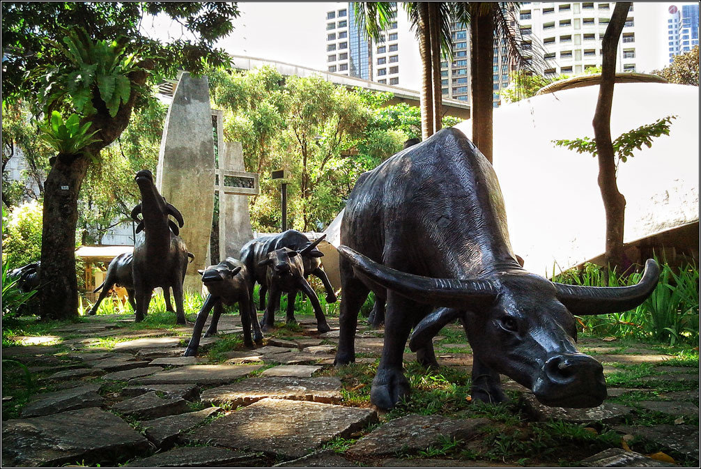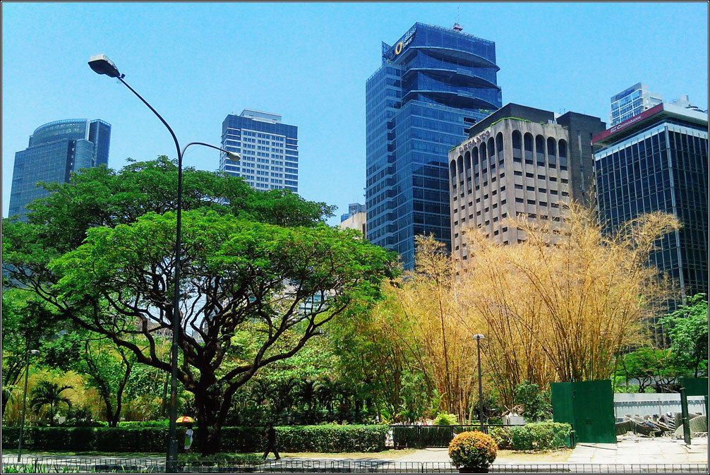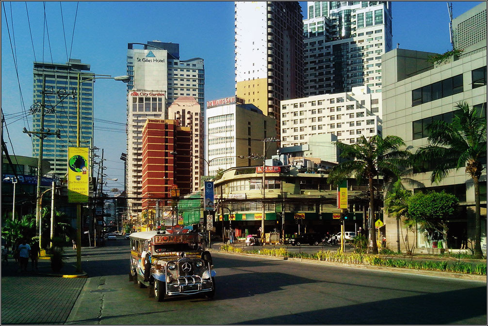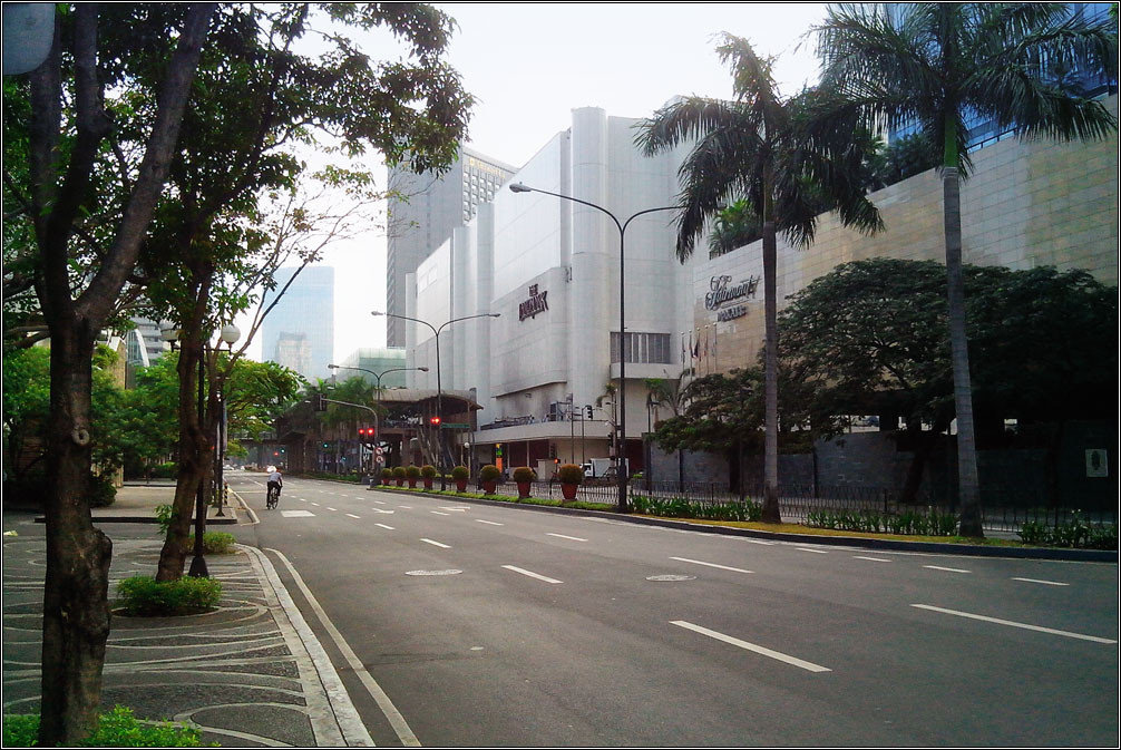 На следующее утро решили все-таки доехать до рекомендованного нам района Макати, благо, он был не очень далеко от нас. Вышли на улицу, сориентировавшись по GPS, нашли едущий в правильном направлении автобус, в давке и толчее проехали буквально пару километров… и оказались в пустынном, чистом, аккуратном, современном европейском городе. Шли по тихим улочкам между небоскребами, искали себе новый отель, попутно призывая всяческие суровые кары на голову вчерашнего таксиста, который сразу не довез нас в это место.