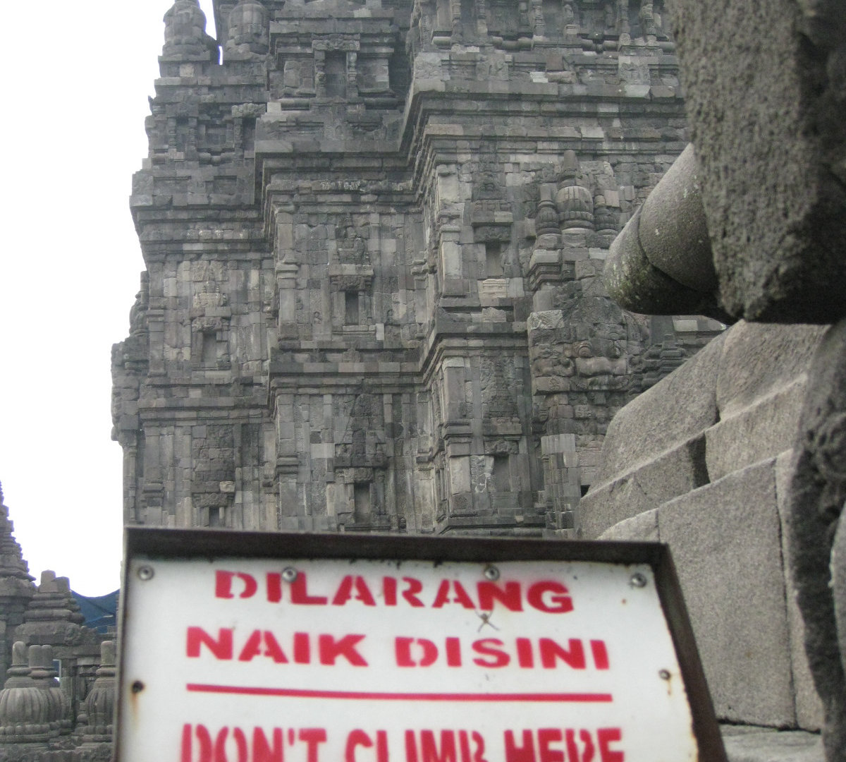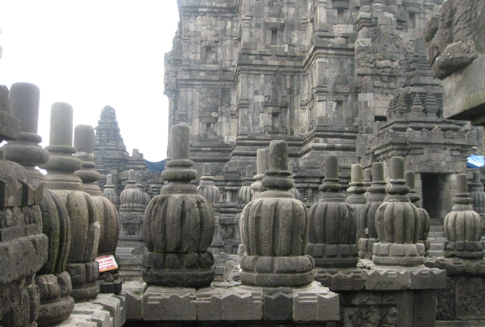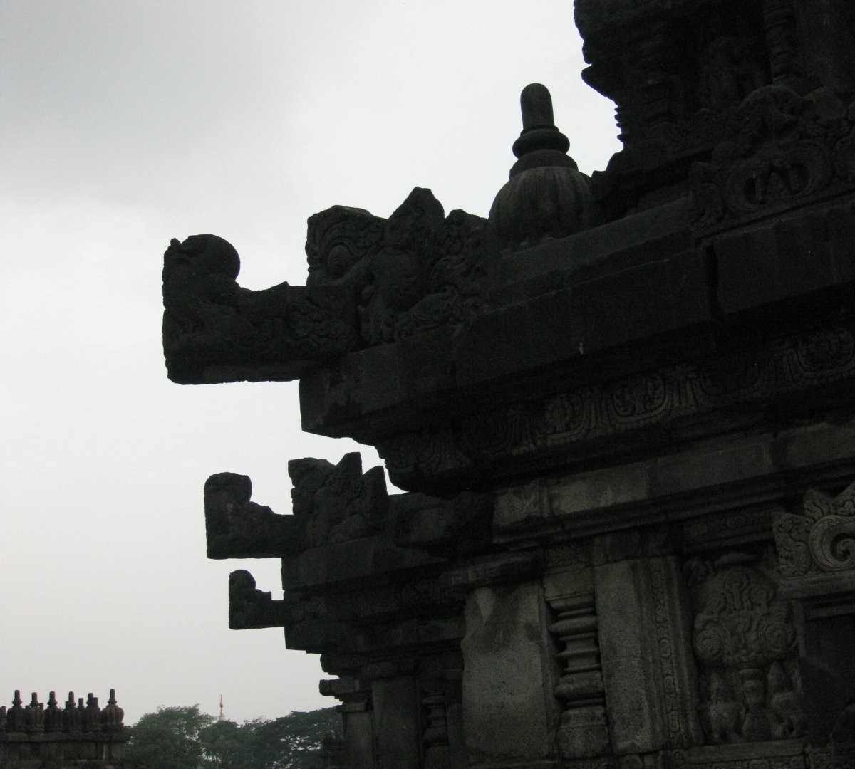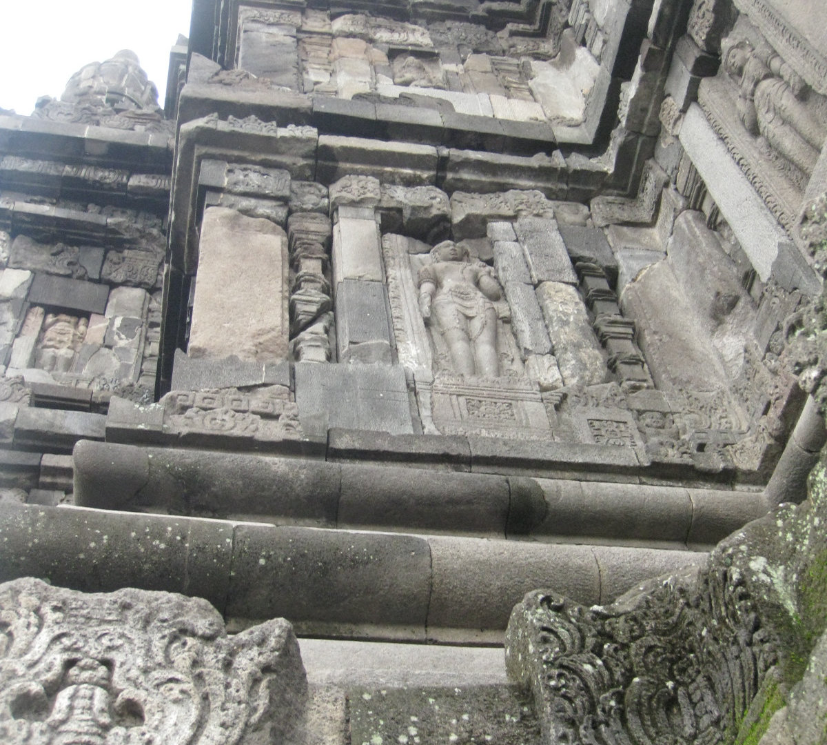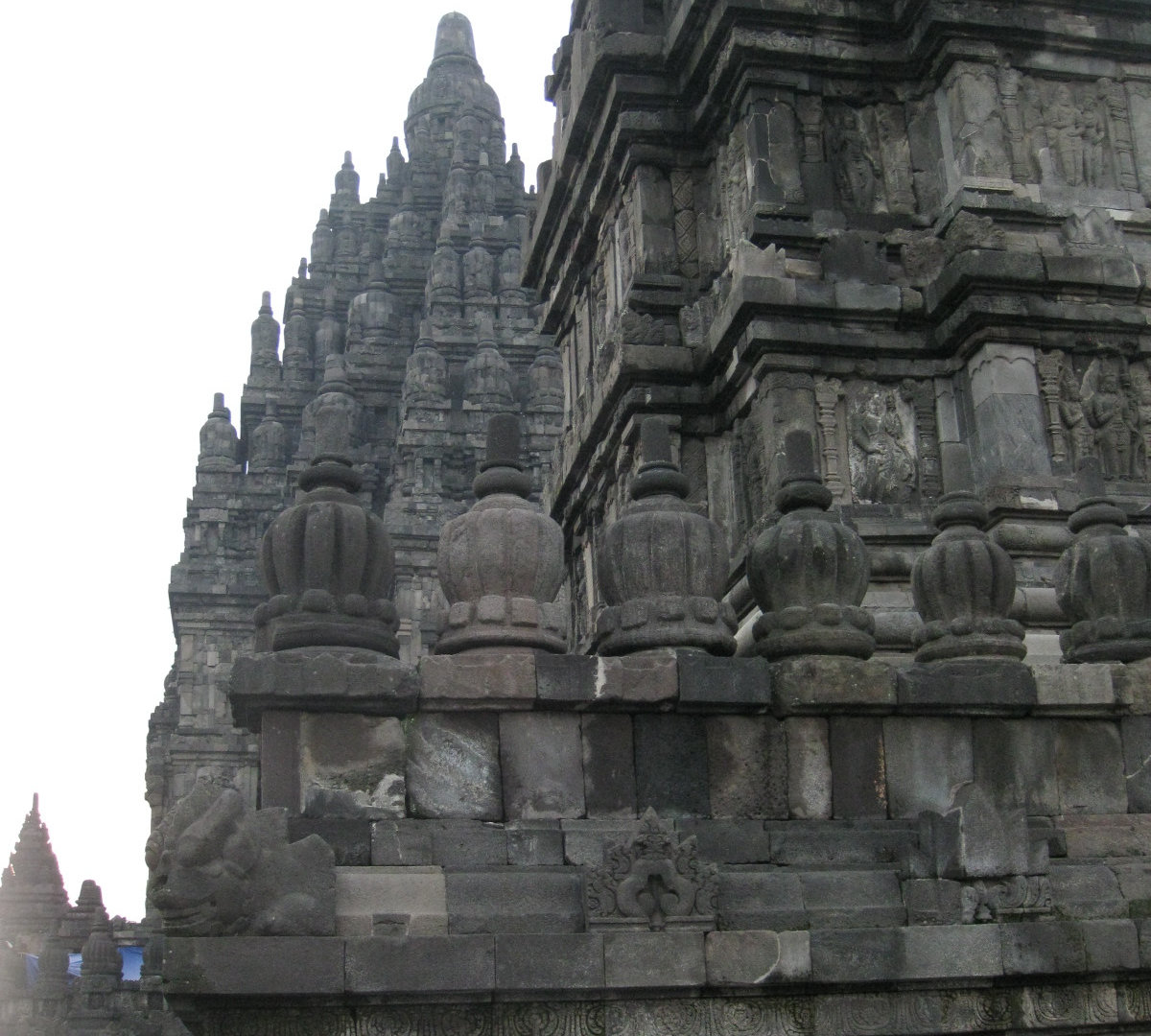 Издалека комплекс мне напомнил постройки из мокрого песка. Когда сидишь на берегу и строишь замки: мокрый песок, который ты зачерпнул, капает из кулака, и каждая капля застывает очередной ступенькой на пирамиде будущего замка. А ещё Прамбанан издалека похож на гигантский термитник. Храмы Прамбанана очень изящные, несмотря на свою огромную величину и все в резных барельефах.