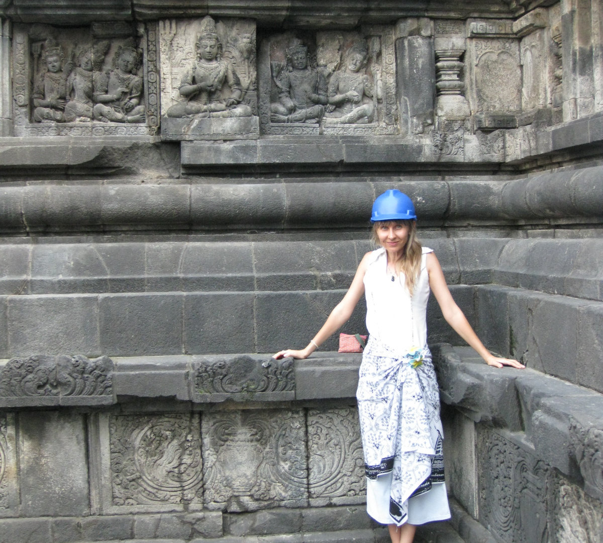 Пока мы снаружи осматривали храмы, я строила догадки о необходимости строительной каски. Даже сняла свою сначала.