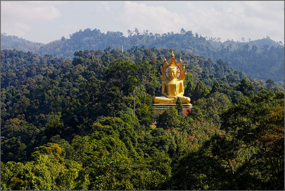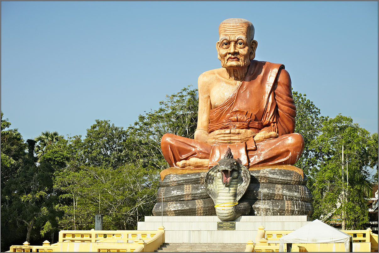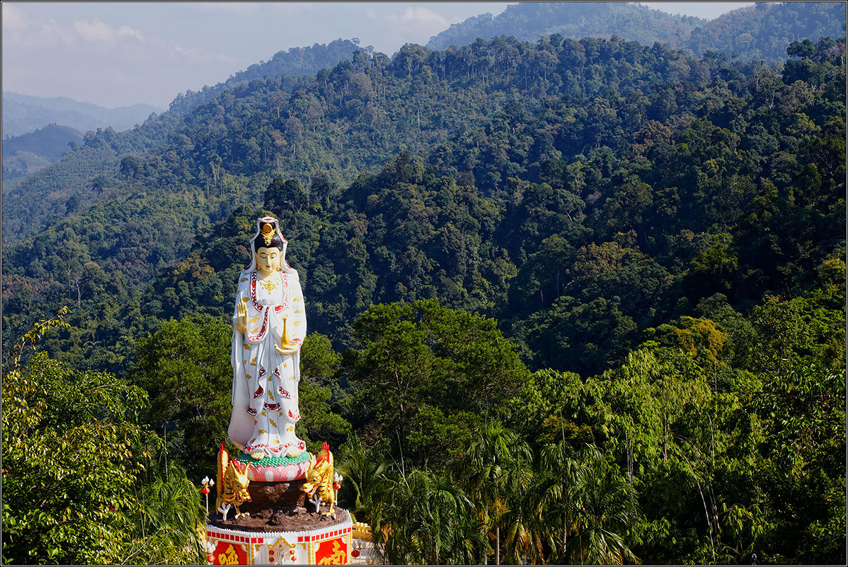 20.01.18Следующей остановкой у нас был Wat Bang Riang — довольно известное место, я его видел раньше на фотографиях, хотя сам не бывал. Построен он в 90-е годы и известен статуями Будды и богини Гуань Инь, стоящими среди джунглей.