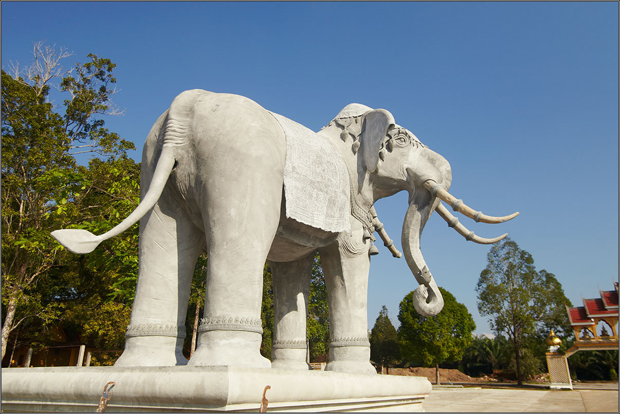 Храм еще строится, здания в лесах, внутри и снаружи суетятся рабочие, слоны забавно выглядят в зеленых защитных сетках. Но там все равно красиво, некоторые ракурсы прямо реально впечатляют. Уж насколько я скептически отношусь к тайским новодельным храмам, но вот сюда совершенно не жалею, что съездил :)