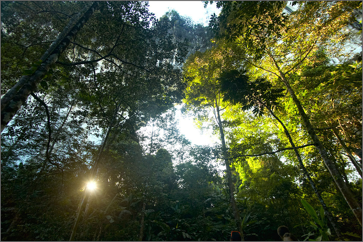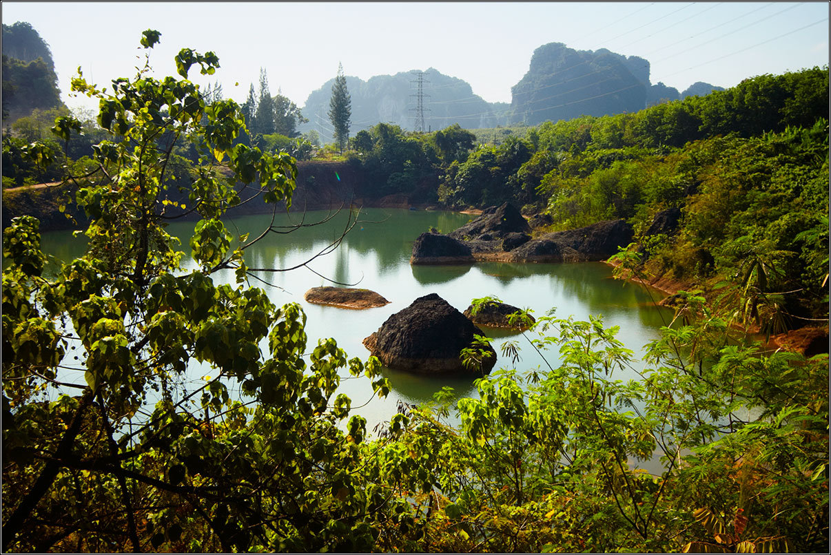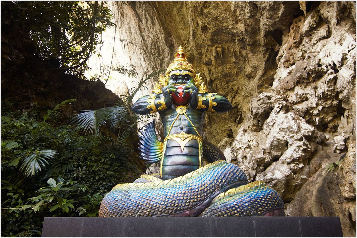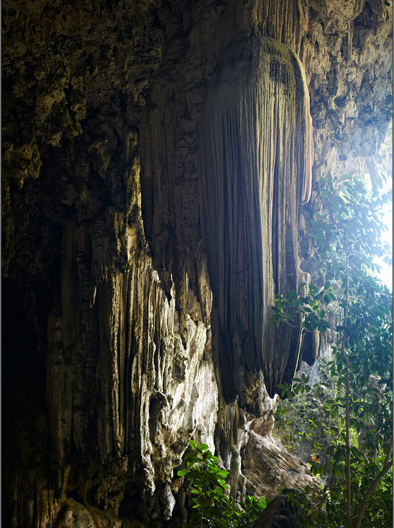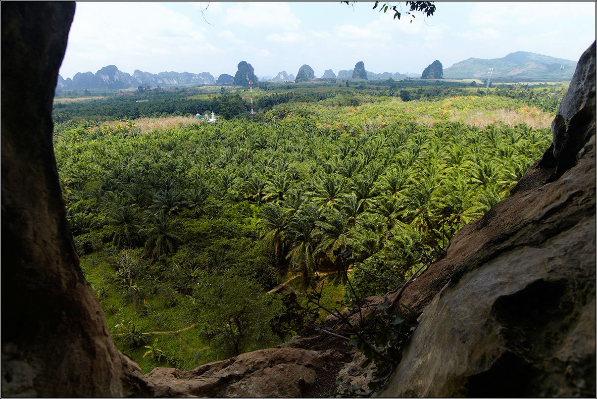 11.02.18Все окрестные горы и скалы изрыты пещерами — местные хрупкие карстовые породы этому способствуют. Их размывает вода, выдувает ветер, в итоге в них постоянно что-то меняется. Горы изрыты дырками, как кусок сыра, сквозные отверстия в скалах выводят на вьюпойнты, откуда открываются симпатичные виды на джунгли, в пещерах гнездятся летучие мыши, каменные будды и монахи. Куда бы ты не забрался — там обязательно будет лежать чья-то подстилка, валяться мятый жестяной чайник, стоять оплывшая свечка, а то и болтаться лампочка на неизвестно откуда тянущемся проводе.