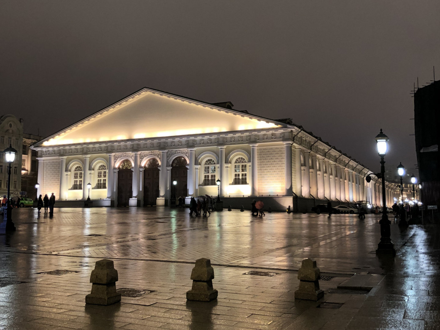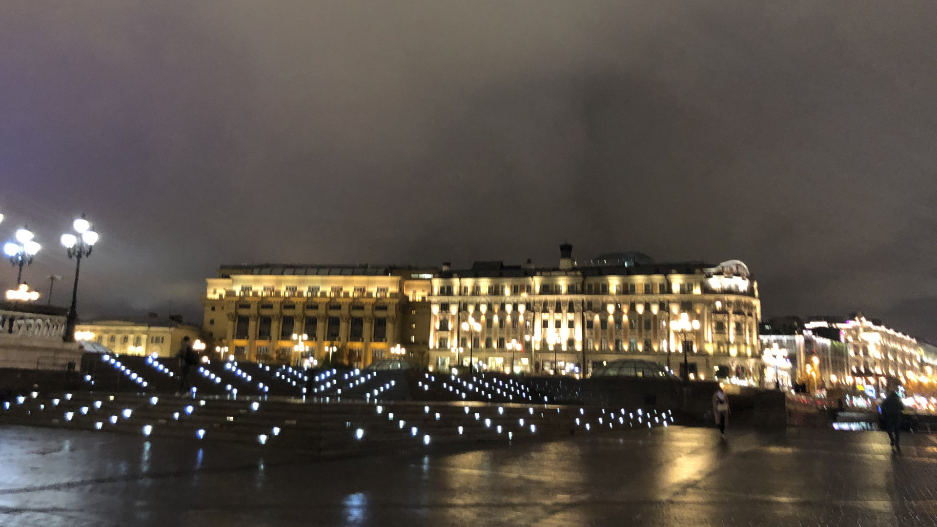 Дождь усиливался, прогулку мы решили завершить на Охотном ряду — оказалось, что вход на Красную площадь закрывают на ночь.