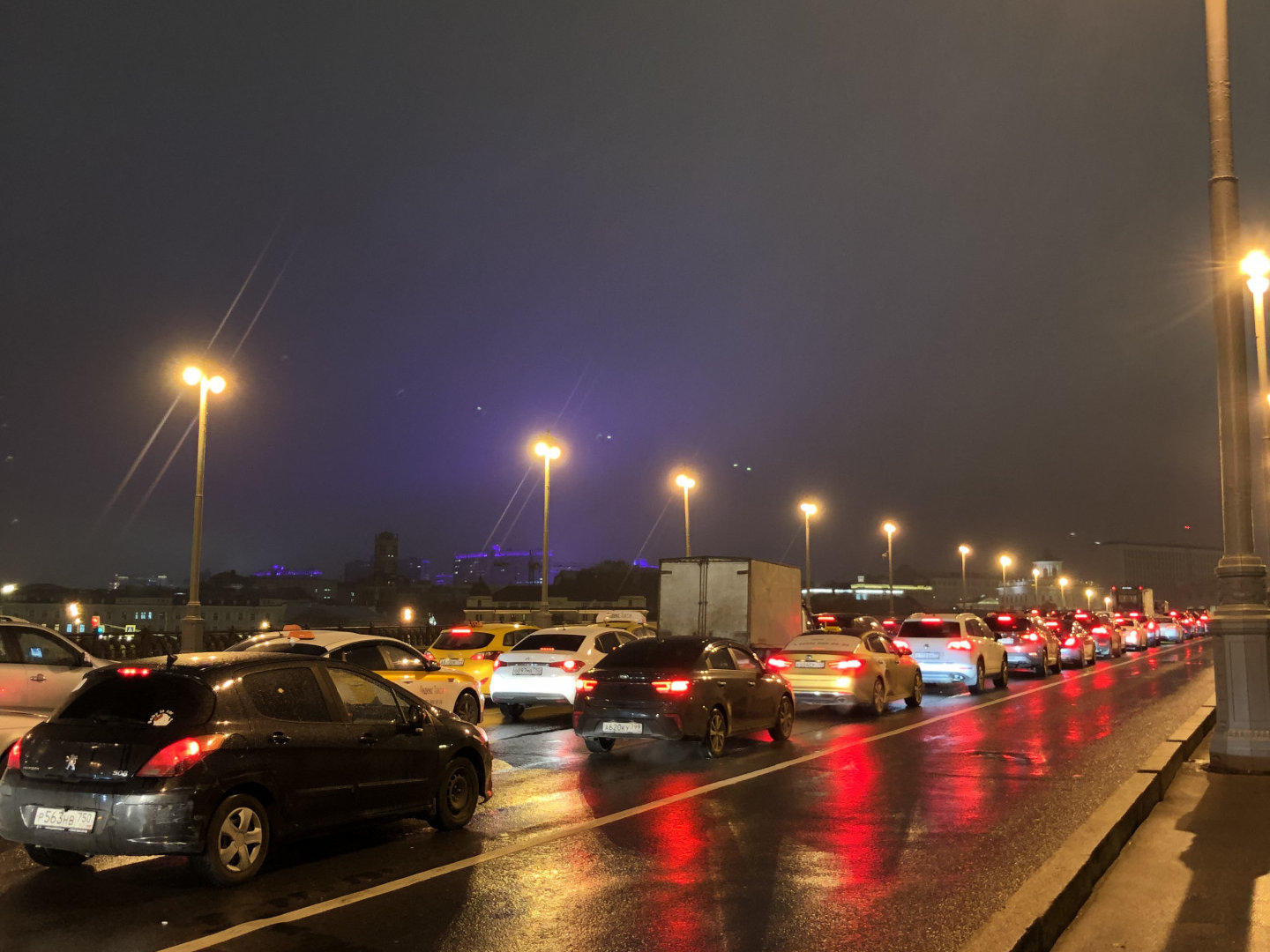Очень быстро все переменилось, когда мы подошли к Большому каменному мосту. Недолго музыка играла! Огромные пробки в 22ч — это вам не спящий в это время Барнаул)))