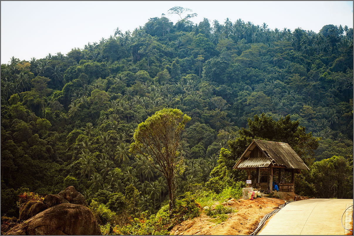 А в этот раз на контрасте было очень заметно. Единственное место, где можно нормально ехать — дорога через горы от Ламая до Маенама. Это горный серпантин с приличной крутизны подъемами и спусками, там нет освещения, его не сразу найдешь на карте, так что туда мало кто суется, особенно ночью. Только это его и спасает.