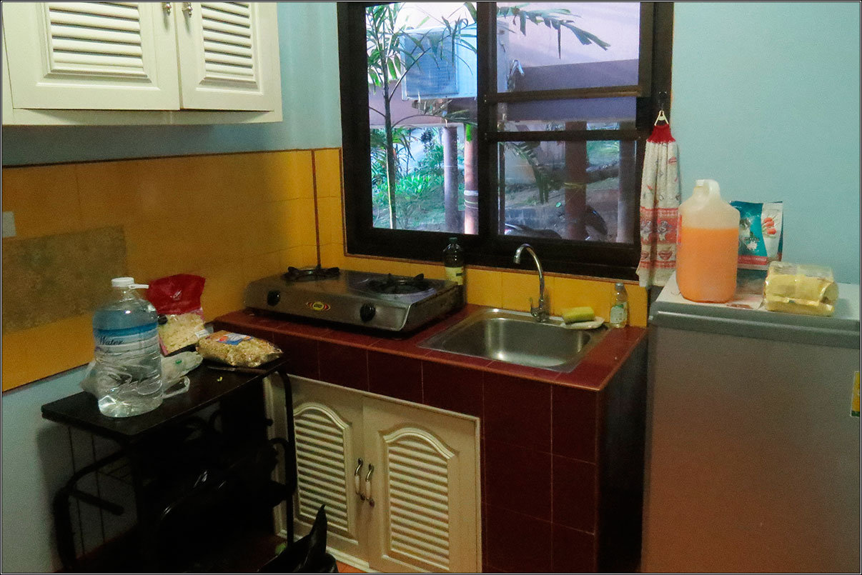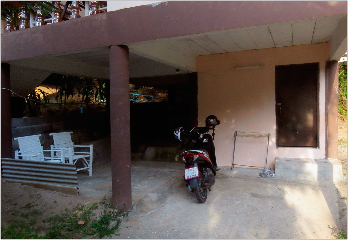 Домик сняли на Ламае, 9000 бат в месяц, спасибо нашим друзьям. Все для жизни есть — спальня, гостиная, кухня, веранда, всякие ложки-тарелки-плита, холодильник, телевизор, кондей и т.п.