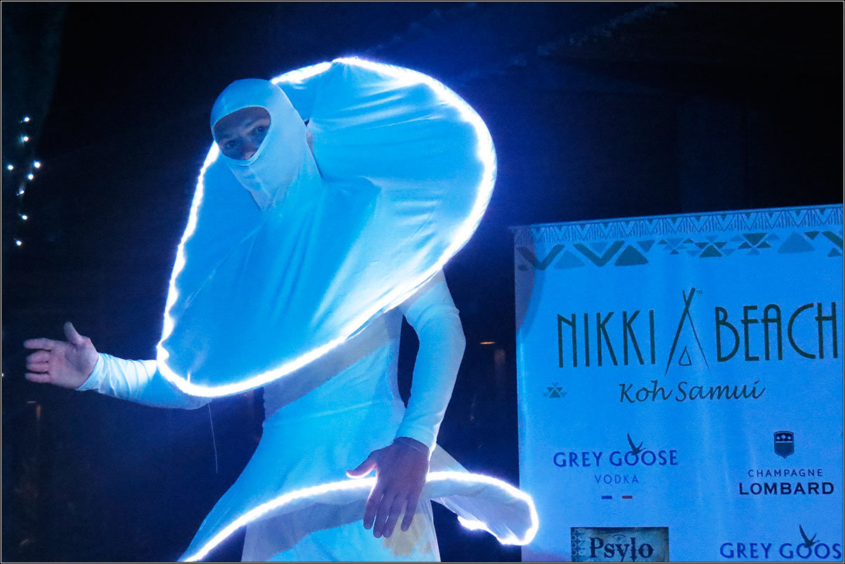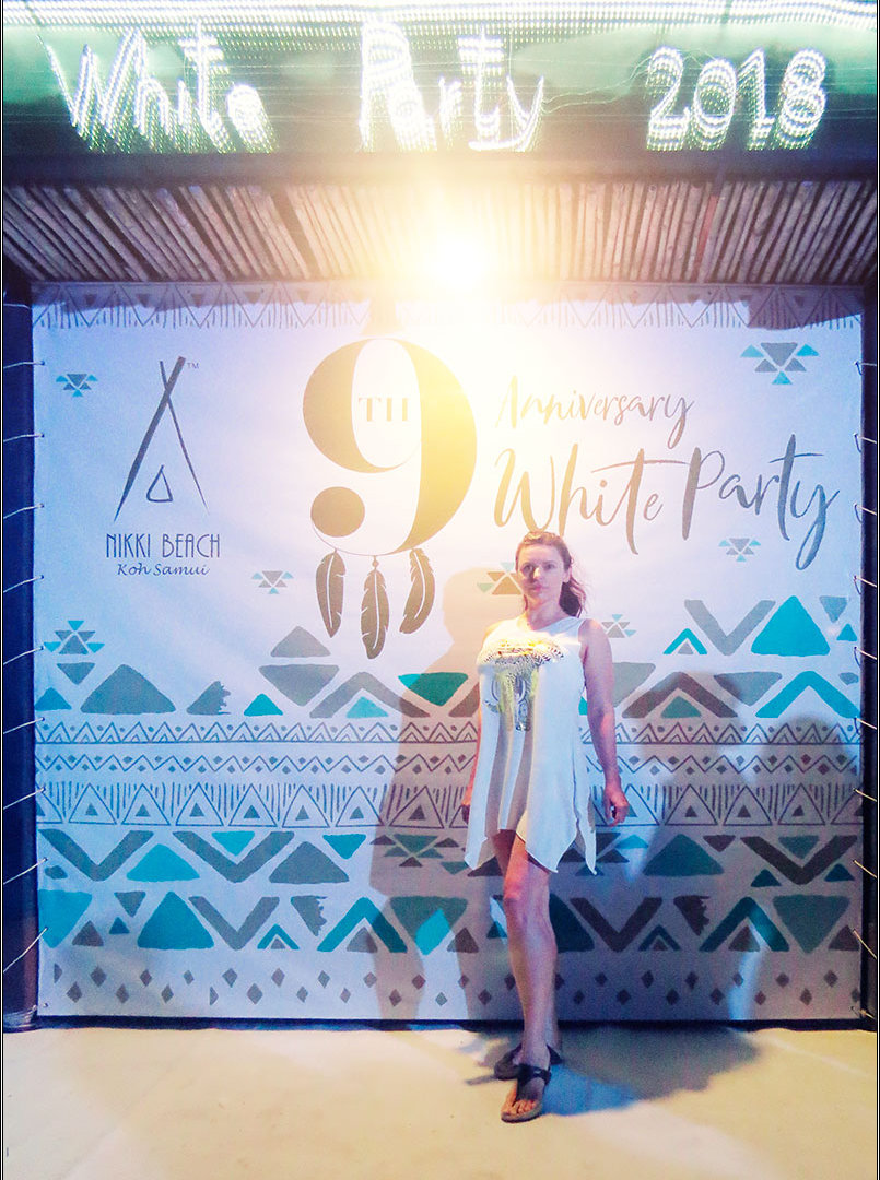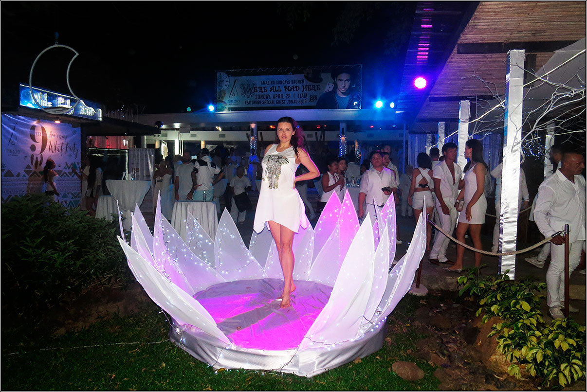 Но тут нам достались на халяву билеты на самую модную вечеринку острова — ежегодную White Party в клубе Nikki Beach. VIP-чего-то там, артисты и шоу, диджеи, дым и цветные прожектора, все обязательно в белом, пиво по 150 бат за бутылочку, ищущие девочки, стареющие мальчики и штампик на руке.