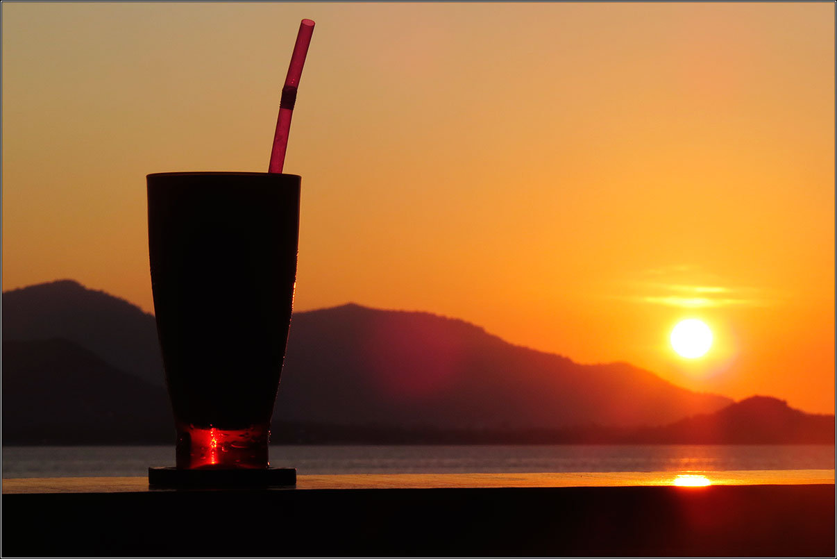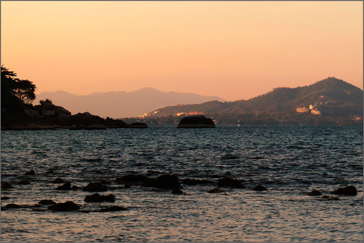 А сам район симпатичный. Самолеты садятся почти на пляж, не так живописно, как на Пхукете, но тоже впечатляет. Море спокойное и гладкое, лодки замерли на якорях и у пирсов, вид на закатные горы из симпатичной кафешки, почему-то почти пустой, хотя она находится прямо на въезде к Большому Будде...