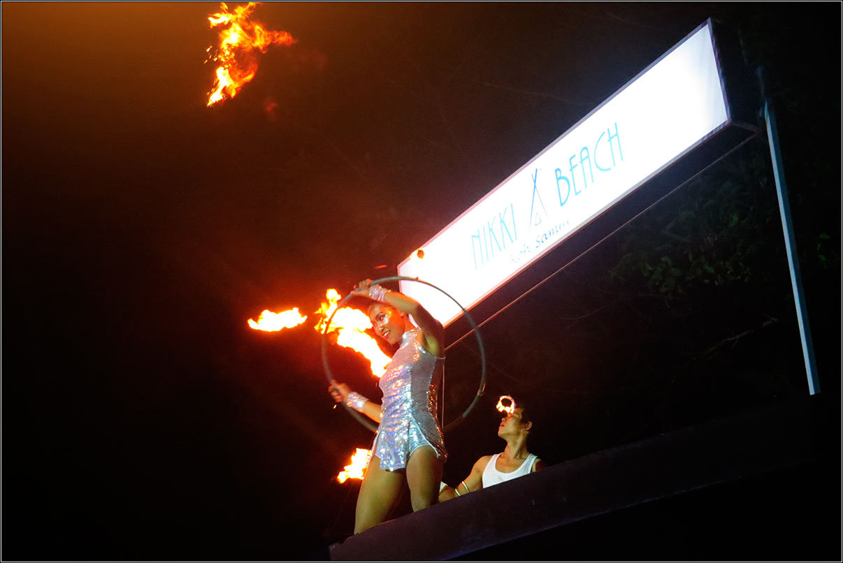 Не, заглянуть было прикольно для разнообразия, но если бы мне пришлось платить за вход — я бы обиделся. Как-то все было очень кустарно: и программа, и оформление, и музыка, хотя, возможно, я просто зажрался слегка. Я в последнее время привык даже на всяких корпоративах и свадьбах видеть более высокий уровень выступлений, а уж местное файршоу уступало по качеству даже девочкам на пляже в Гоа.