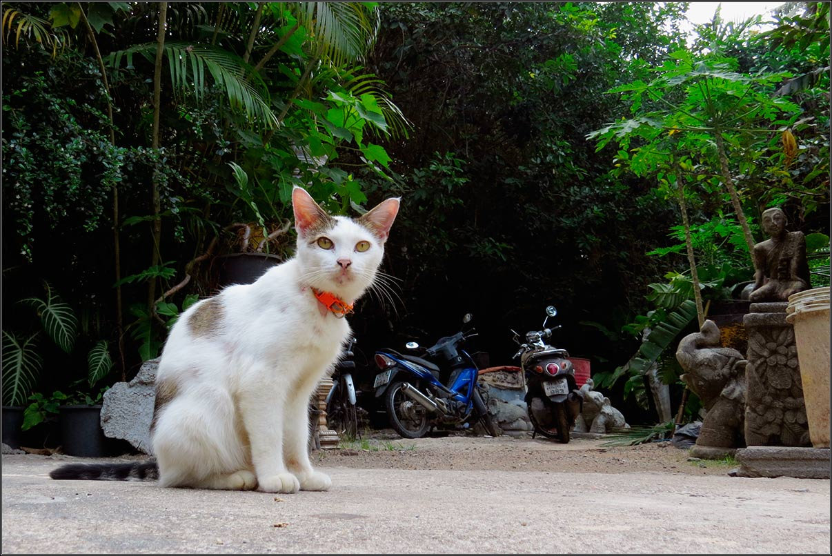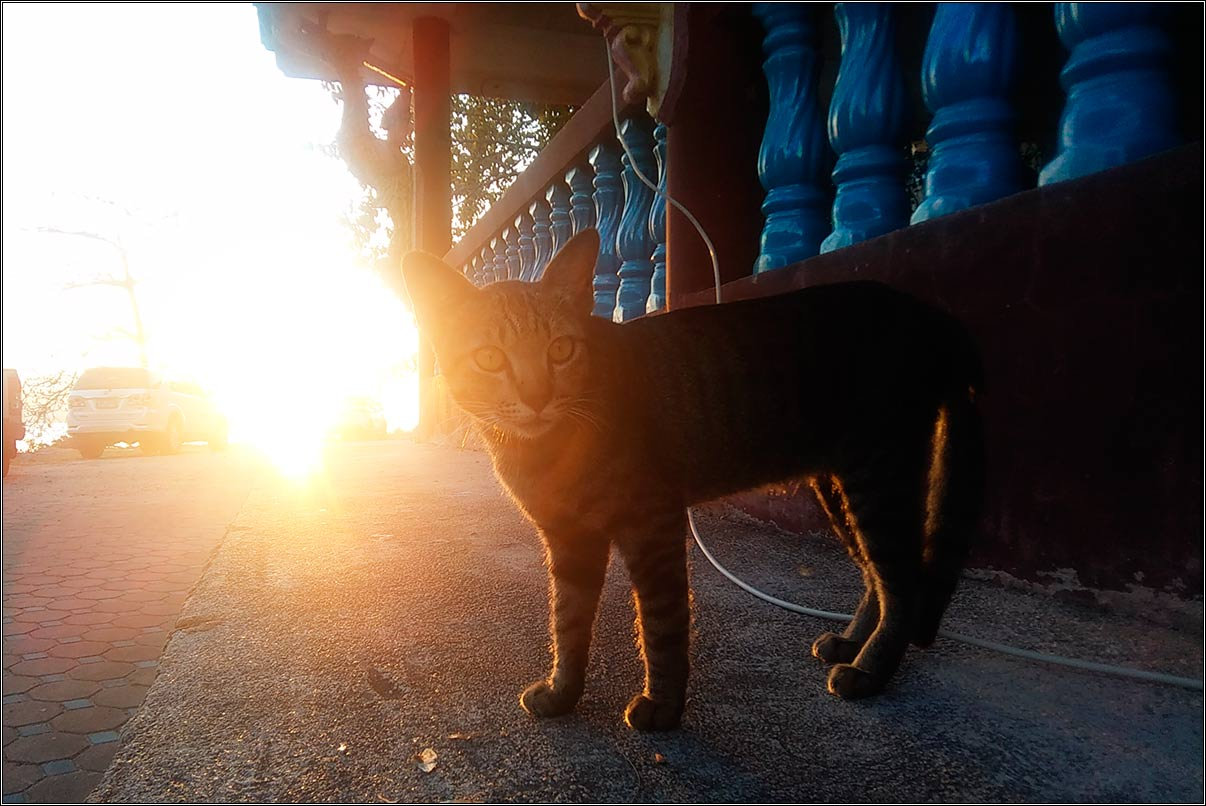 Хороший у нас дом, но дорога к нему очень крутая, причем, сначала резко вверх с поворотом, а потом так же вниз. А ночью там еще и пара хозяйских собак вылезает на камни погреться, лежат такие белые на белом, как их до сих пор не задавил никто — непонятно.Опять встретил очередных знакомых в Теско. Самуи — очень маленький остров, тут даже договариваться о встрече не надо, все равно где-нибудь столкнешься случайно.Поехали со знакомой девушкой на ночной воскресный рынок. Запарковались, пошли смотреть, что тут продают. Мы с женой нагулялись и поехали домой, а она там осталась. В итоге потом почти два часа через фейсбук выводил ее к парковке — она потеряла байк и не могла его найти среди торговых рядов.Сигареты в Таиланде дорогие. Когда мы ездили за визой, я в дьюти-фри на границе с Малайзией купил два блока местных сигарет, они получались по 20 бат за пачку. Но они давно кончились, а в Тае сигареты стоят минимум по 60. Вчера же мне продали в ларьке какой-то явно поддельный Мальборо вообще за 100, и на вкус он как советский «Космос» — трава травой.В очередной раз поставил заряжать аккумулятор камеры, и благополучно забыл его вставить обратно. Так что сегодня у меня в качестве иллюстраций — самуйская мобилография, не обессудьте.
