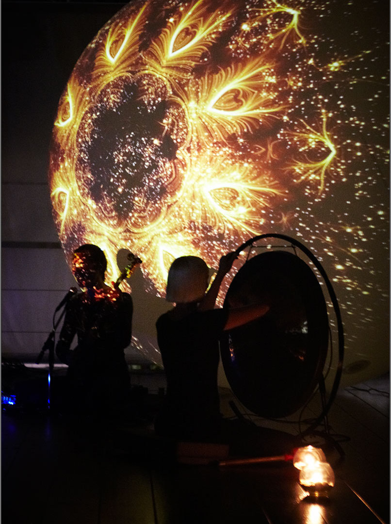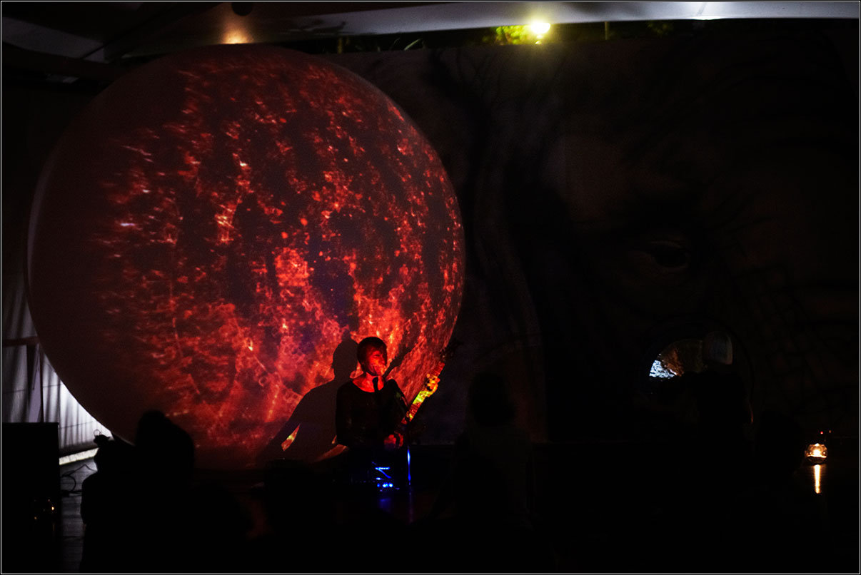 Только в Гоа под эту музыку всякие местные просветленные устраивали физкультурные импровизации и перформанс, а тут все мирно сидели и лежали, погруженные в медитацию. Функцию же визуального воздействия выполнял проектор и большой шар, на котором попеременно вращалась вселенная, сверкал Ом и крутились мантры. Ну, зато в этот раз у меня с собой была предусмотрительно захваченная зеркалка, так что мне даже удалось что-то снять, пусть на iso 3200 и выдержке 1/10-1/25.