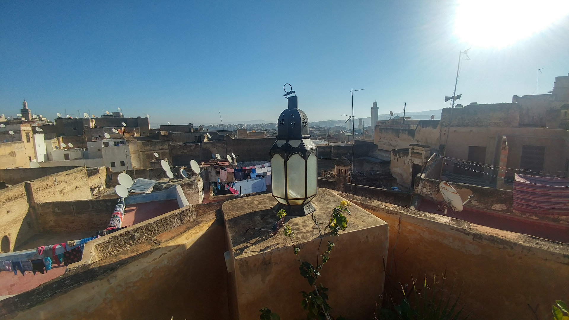 За грязно-жёлтыми стенами медины Феса порой скрываются настоящие дворцы. В Марокко обязательно стоит остановиться в риаде – традиционной гостинице с внутренним двором. Каждый из них уникален и часто богато украшен орнаментами, мозаикой, резьбой. Внутри двора часто располагается небольшой фонтан. В совокупности, всё это позволяет найти укрытие от хаоса улиц, царящего вне его стен. Риады отражают философию марокканской архитектуры — внешне и богатые, и бедные здания выглядят одинаково, различия не выставлены напоказ и видны только если попасть внутрь здания.