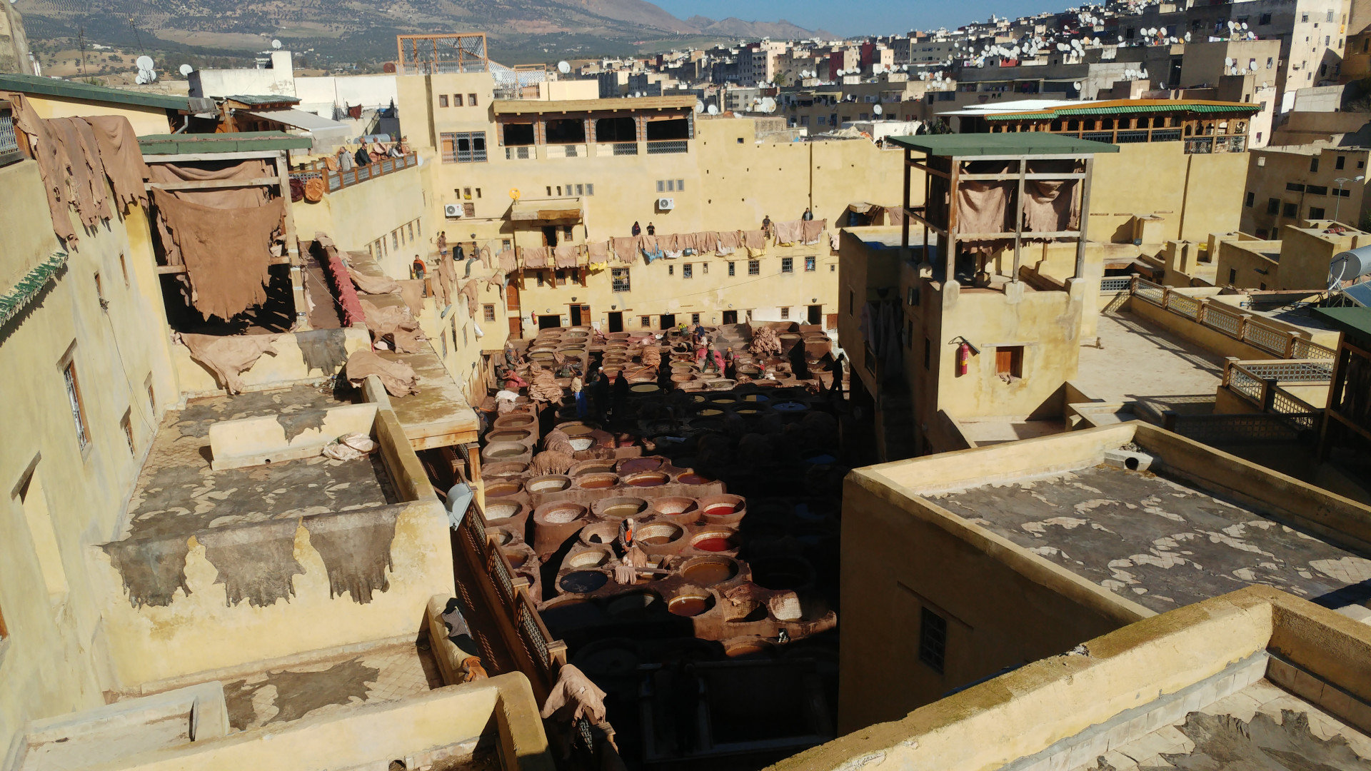 Соответственно, красильни пахнут смертью и дерьмом. Зимой запах терпимый, но на жаре и вправду может понадобиться веточка мяты, которую здесь стандартно выдают на входе на смотровые площадки с которых можно наблюдать процесс выделки кож.