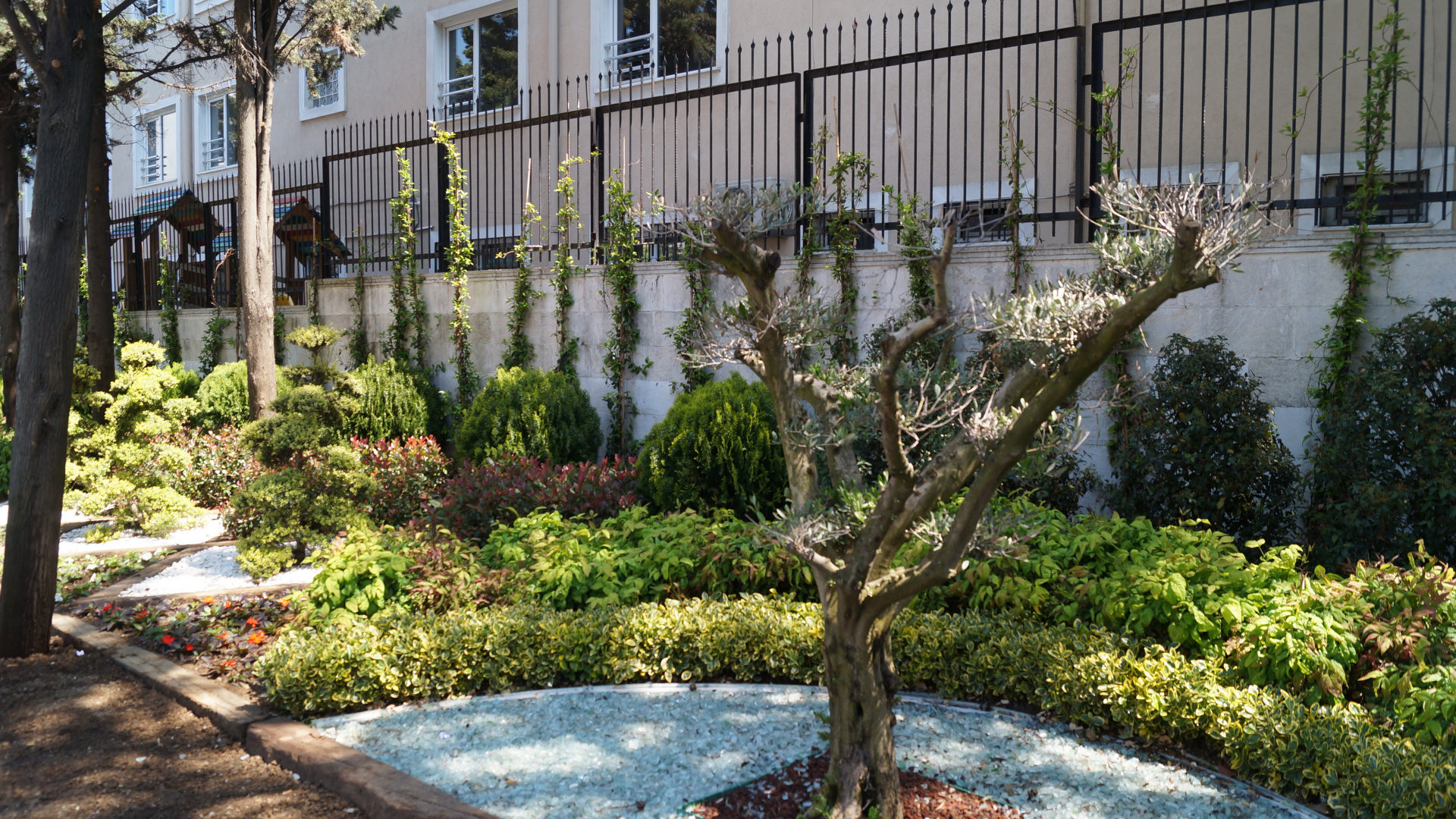 Даже клумбы вокруг мечети очень своеобразные) засыпаны стеклом.
