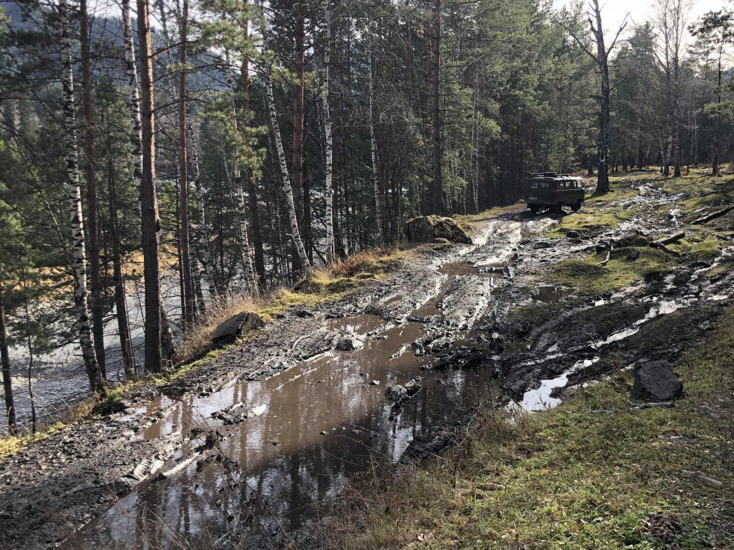 Как в настоящих сказках, путь к цели состоит из испытаний и трудностей. И до наших озер добраться можно только спецтранспортом. По-русски говоря, на авто с полным приводом. Мы заказали такой транспорт у местных жителей, которые ждали нас на УАЗах на въезде в посёлок. Чтобы добраться до Аската, нужно ехать по направлению на Чемал, и на третьем по счёту мосту перебраться на левый берег Катуни.