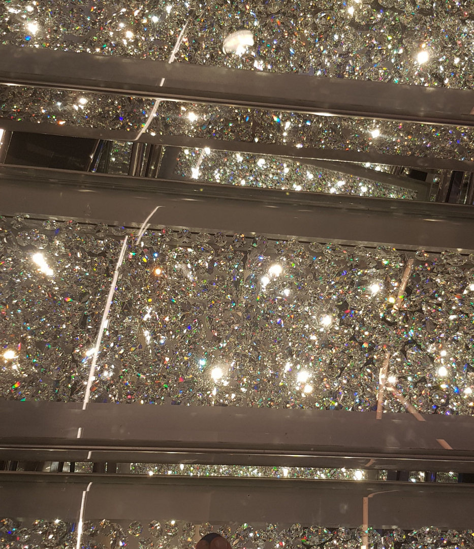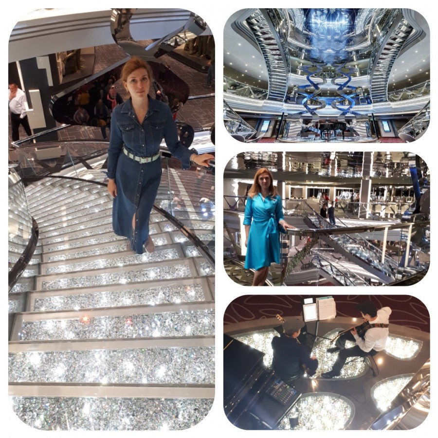 От хрустального чуда начинается Променад. Это 6 палуба. Променад также служит центральной артерией корабля, с которой ты не только попадаешь во все нужные места, но еще и чаще всего сходишь/ выходишь с корабля.