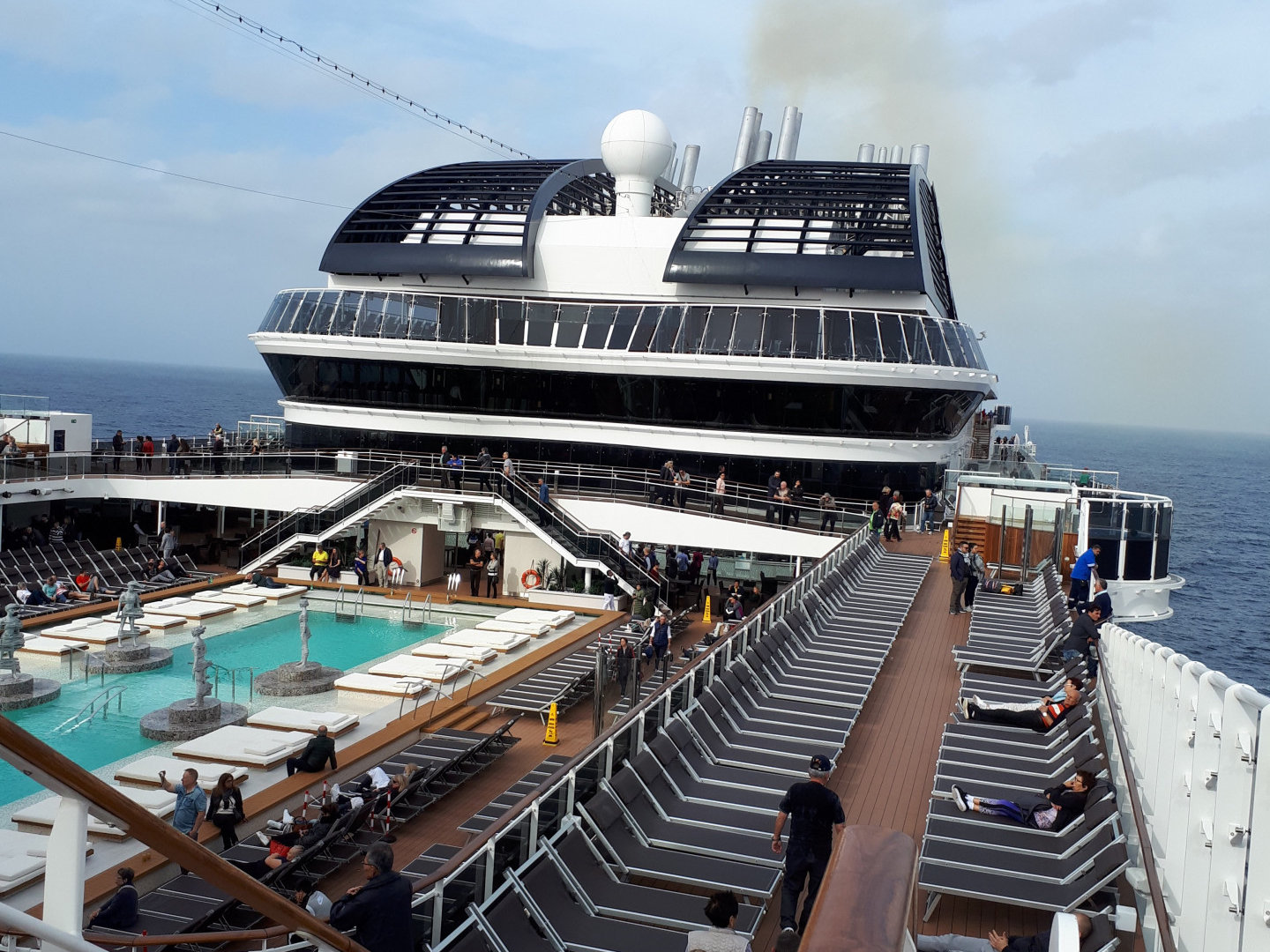 Еще есть бассейны. Большая часть на палубе и в ноябре они были с водой но без людей. В одном из них есть аквапарк. Вполне себе внушительные горки. При нас пара детей отчаянно трясясь катались. Хотя на вид это было холодно. Но думаю, что летом оттуда детей не выгонишь. Есть внутренний бассейн, но довольно мелкий и чаще всего многолюдный.