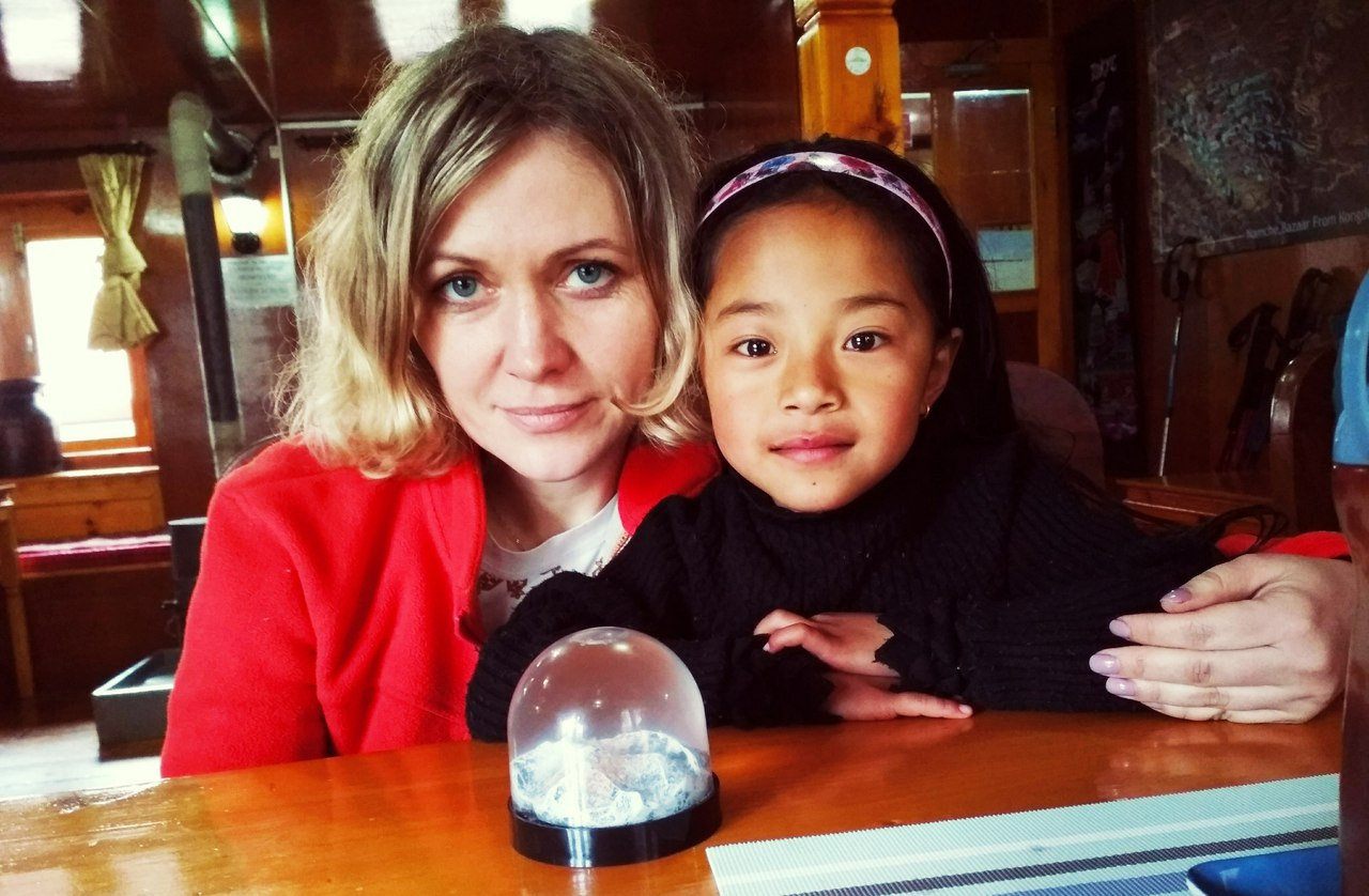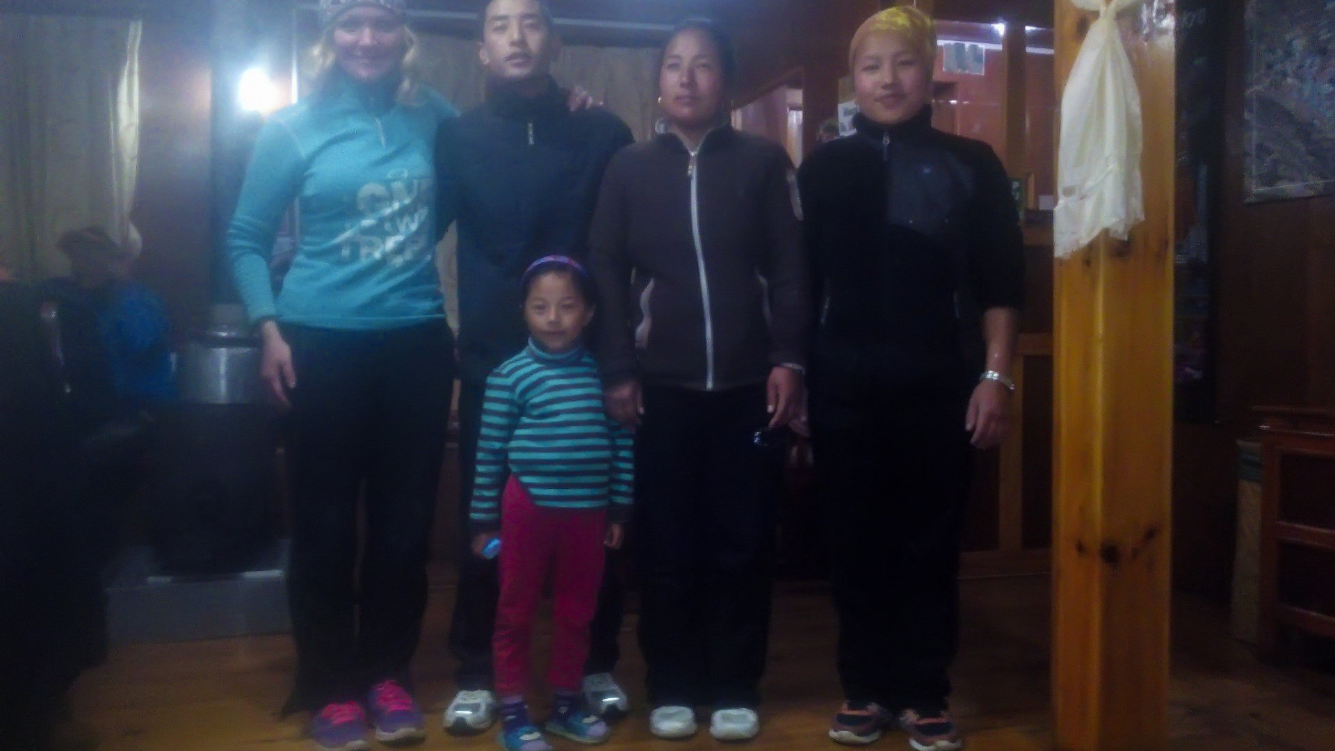 Во второй раз я пришла сюда во время одиночного путешествия. Не было никаких сомнений, где остановиться. Я в первый же день поднялась в Намче, переход был нелегким. Сунил сразу же узнал меня: «Ты была у нас в прошлом году! Ты из России!» И тут же горячий чай, душ, ужин, чистая постель – и я в полном порядке. У Сунила здесь жена, сестра и дочь. Чоки очаровательная девочка, очень умная, говорит «всего на 8 языках», один из которых английский. Она очень общительная, все постояльцы без ума от нее, этой невероятно живой, красивой и открытой девочки. Мы с ней подружились.