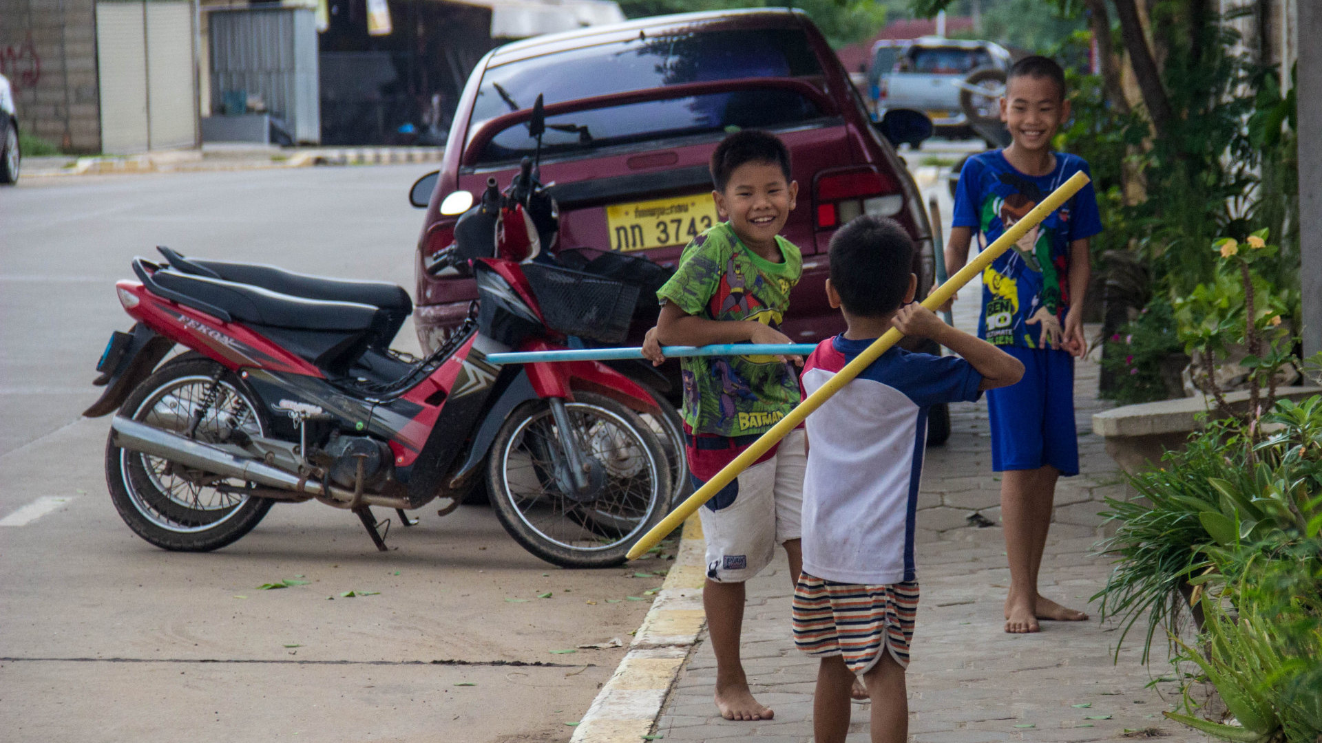 А вот буддизм у Ласцев в крови. Они никуда не торопятся, да и по такой жаре особо не побегаешь. Складывается впечатление, что их совершенно не беспокоит эта мирская суета и вообще проблем у них нет. Не думай о проблеме и её не станет", — вроде так они и рассуждают. Все «БО ПЕНЬ ЯН».Размеренность и спокойствие. Я за все свое время прибывание здесь не видела ни одного расстроенного Лаосца. По улицам бегают дети, а играют они с палками, ну прям, как в моем детстве — никаких гаджетов.