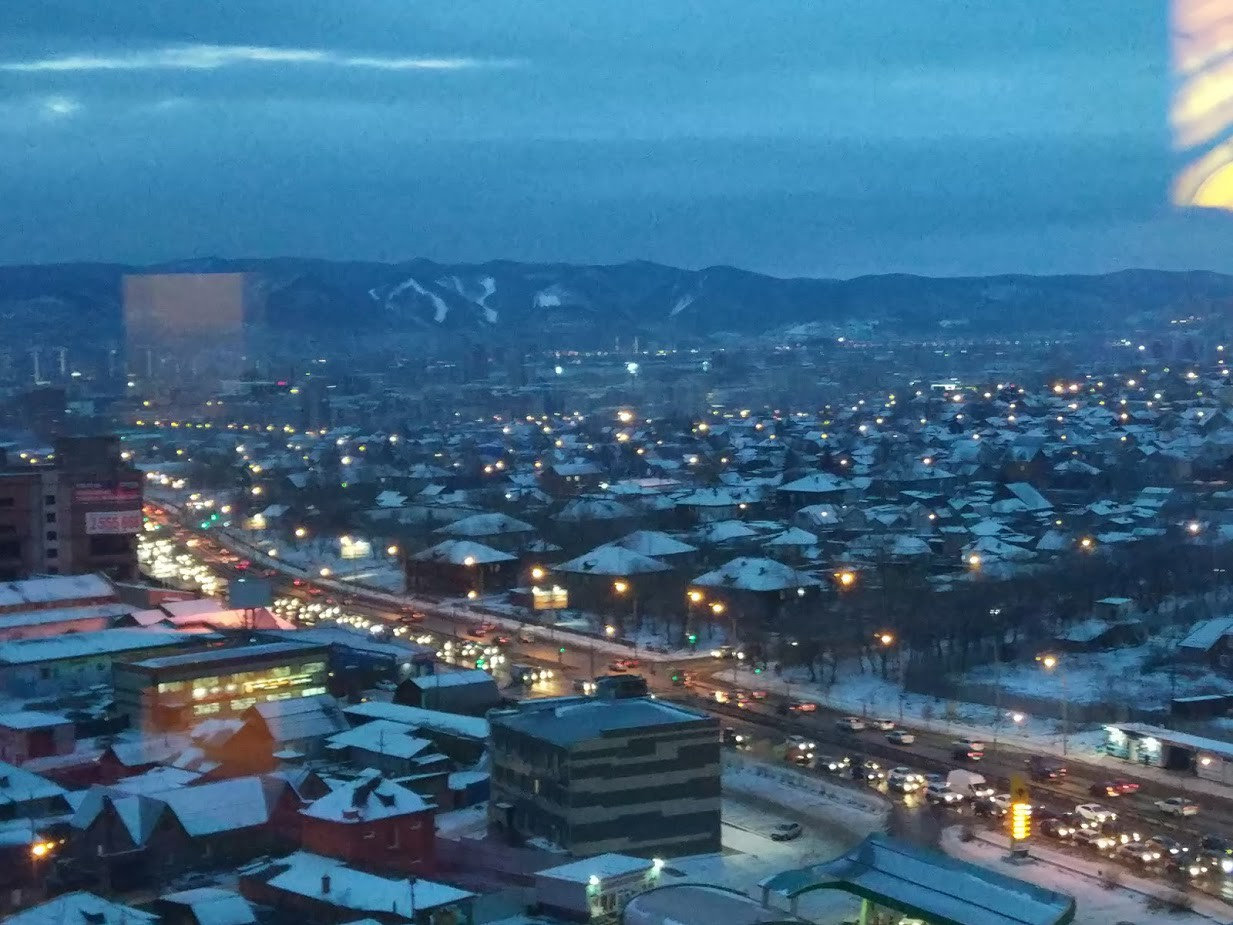 Частный сектор Покровки с одноэтажными домами не мешает увидеть сопки, окружающие правый берег Красноярска.