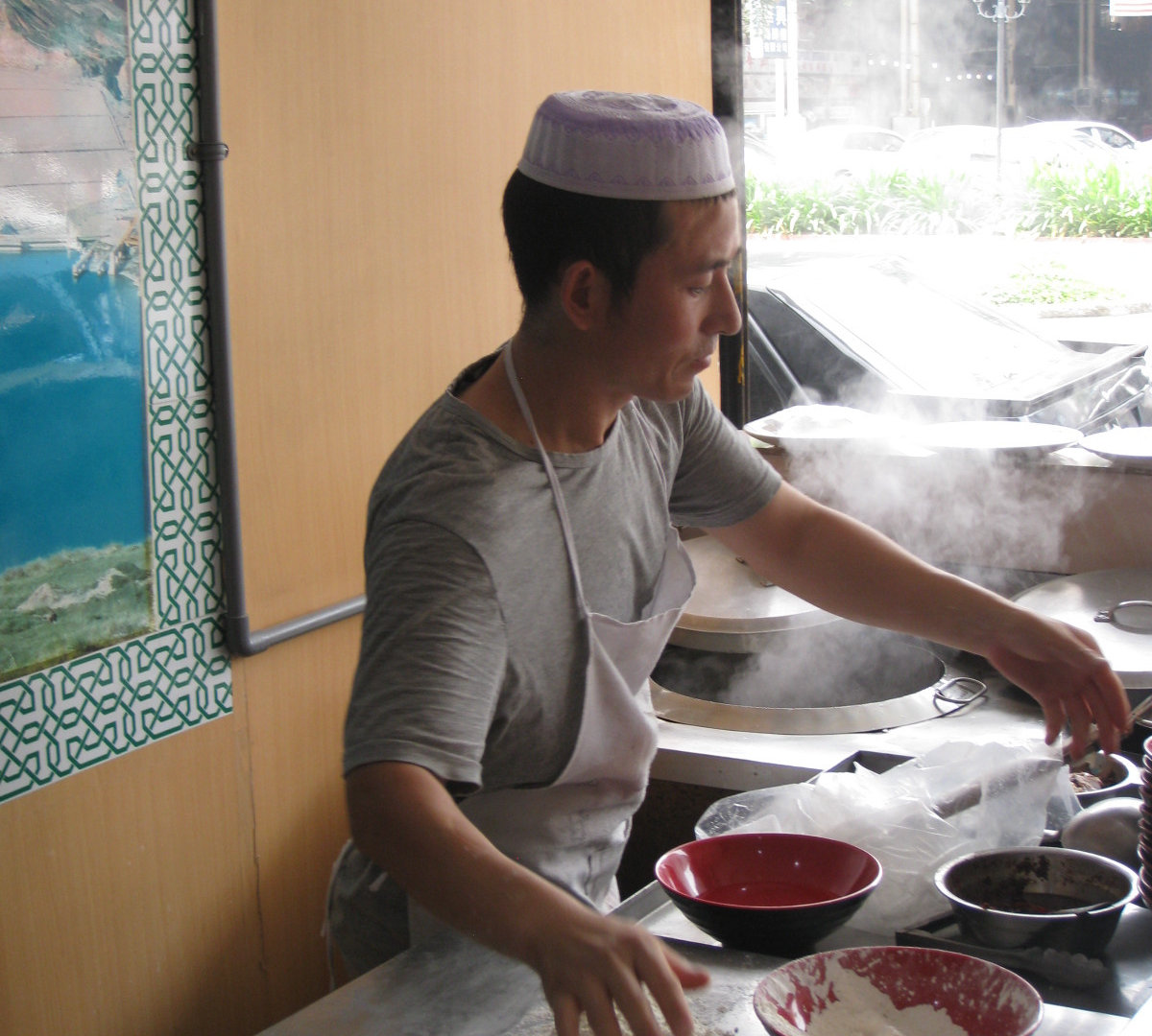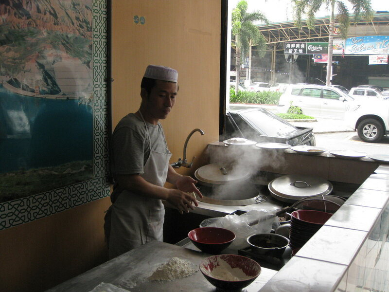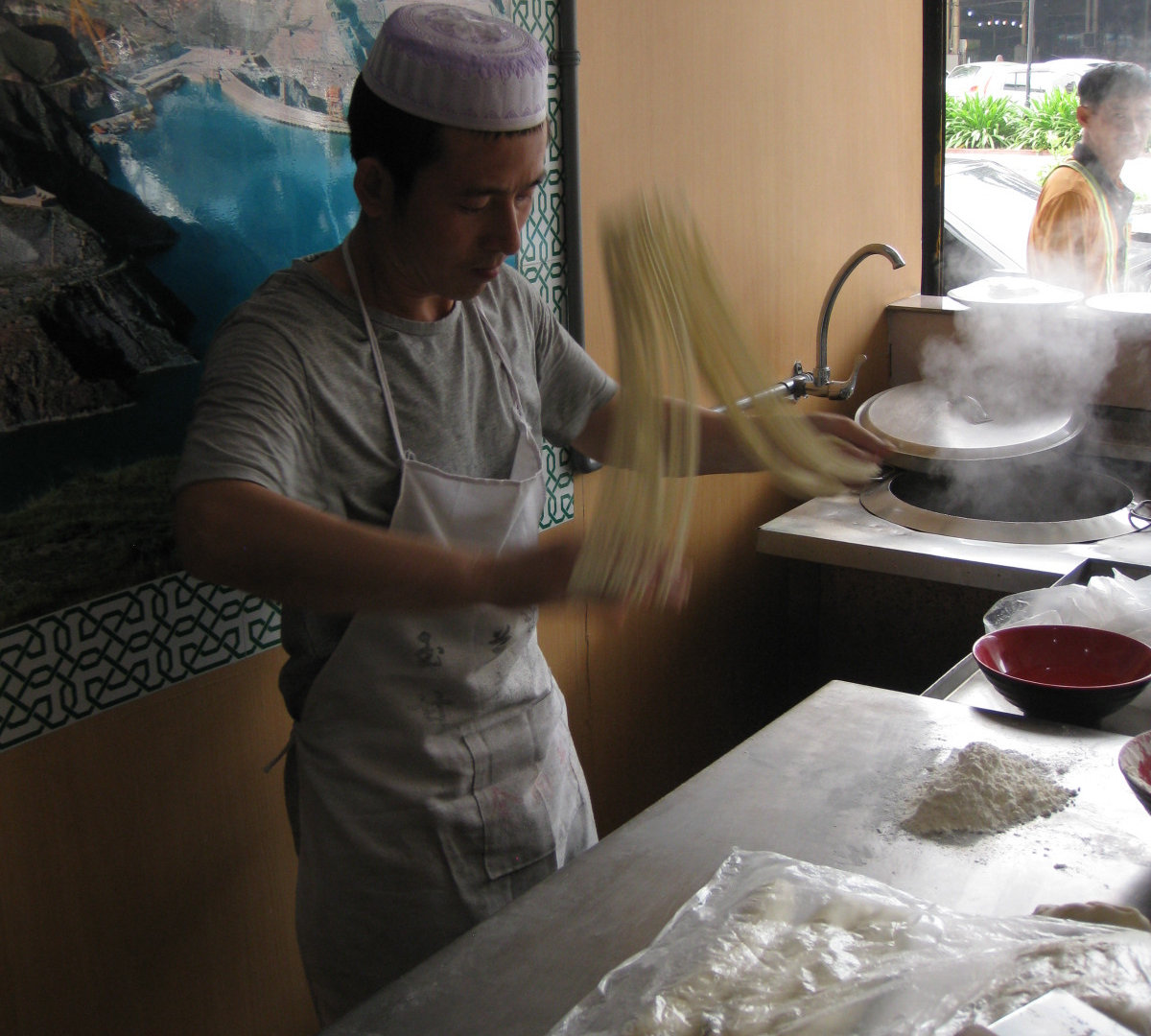 Само приготовление такой лапши-очень необычное действо! Я смотрела,как повар ловко раскатывает и растягивает тесто.А потом вдруг-раз!-и вытянутое тесто распадается на лапшу!