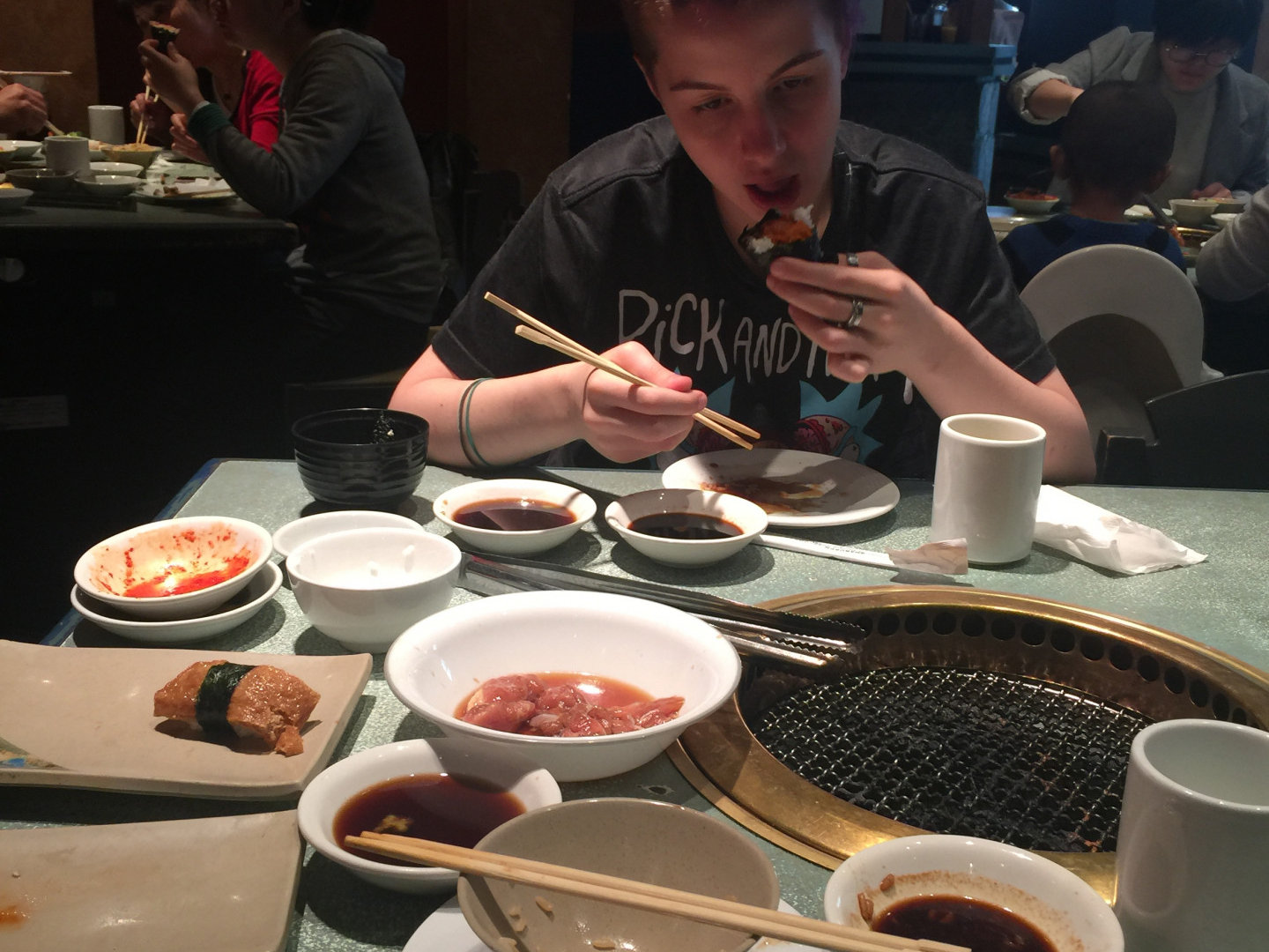 Это заведение Shabusen, «надыбала» из «Орла и решки», здесь в основном азиаты. Можно заказать готовые блюда, а можно самой выбрать и пожарить на гриле прямо перед собой