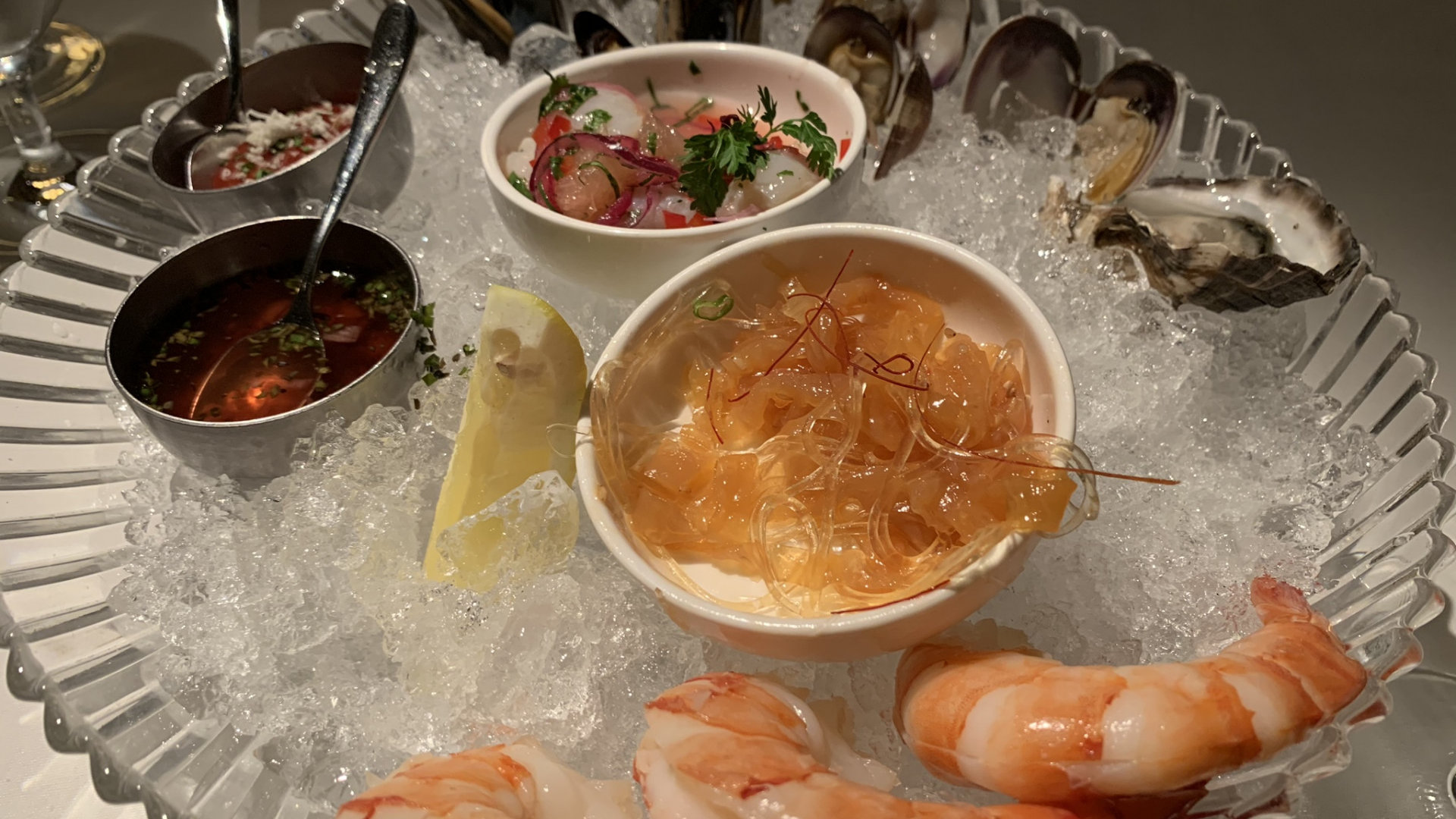 4.Ужин Blue Water Cafe +Raw Bar очень дорого, пафосно желтое непонятно что в мисочке это медуза.Достойное вино
